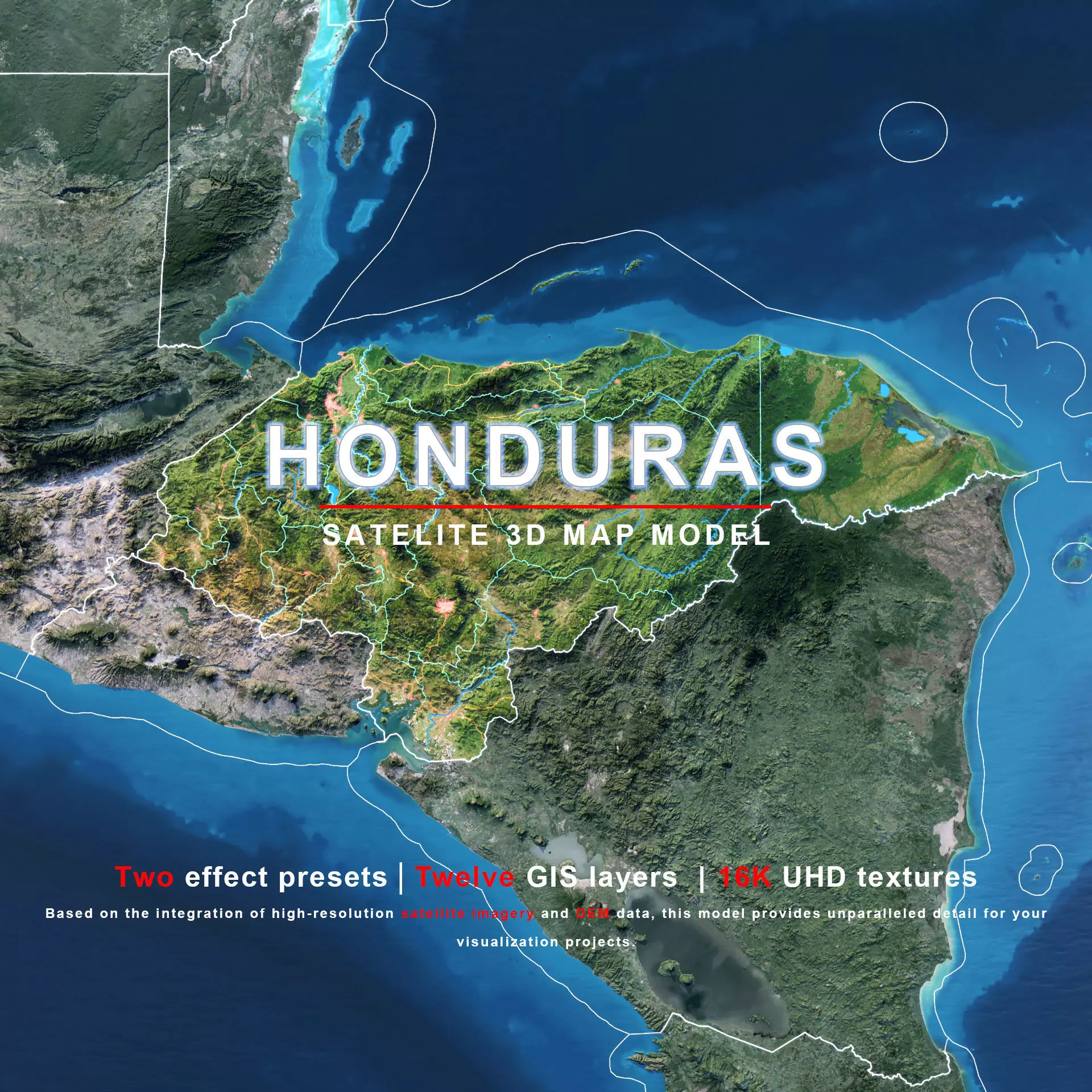 The model includes satellite imagery and masks. The masks are primarily used in material blending to adjust the material representation based on different geographical data. We provide texture maps in both 8K and 16K resolutions.