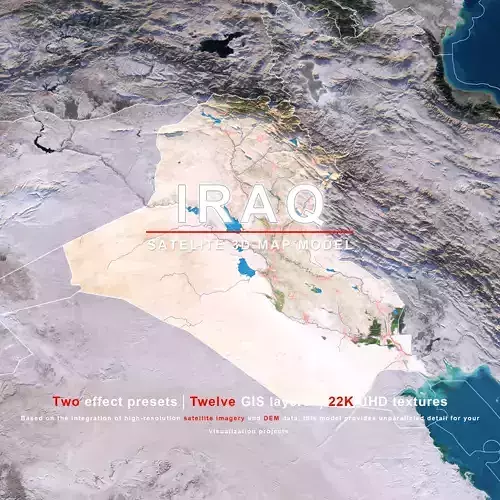 The model includes satellite imagery and masks. The masks are primarily used in material blending to adjust the material representation based on different geographical data. We provide texture maps in both 8K and 22K resolutions.