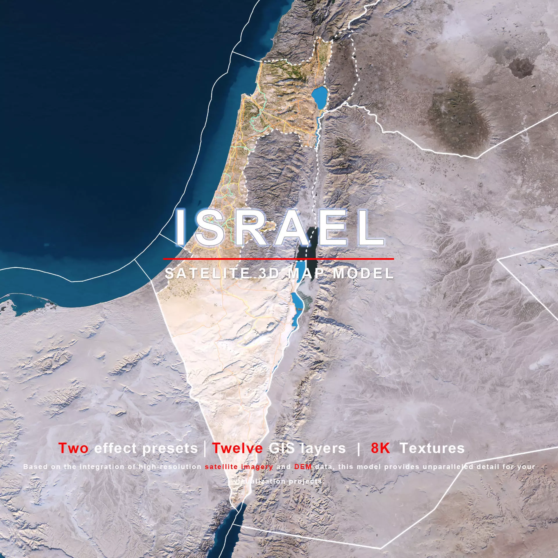 The model includes satellite imagery and masks. The masks are primarily used in material blending to adjust the material representation based on different geographical data. We provide texture maps in 8K resolutions.