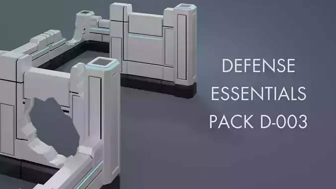 Clean and readable low-poly sci-fi styleStrong and consistent D-Series visual identity (grey / cyan palette)Modular wall system with intact and damaged variantsOptimized models ideal for real-time gamesPerfect for tower defense, RTS, base-building and base defense gamesNo textures used (simple color materials only)