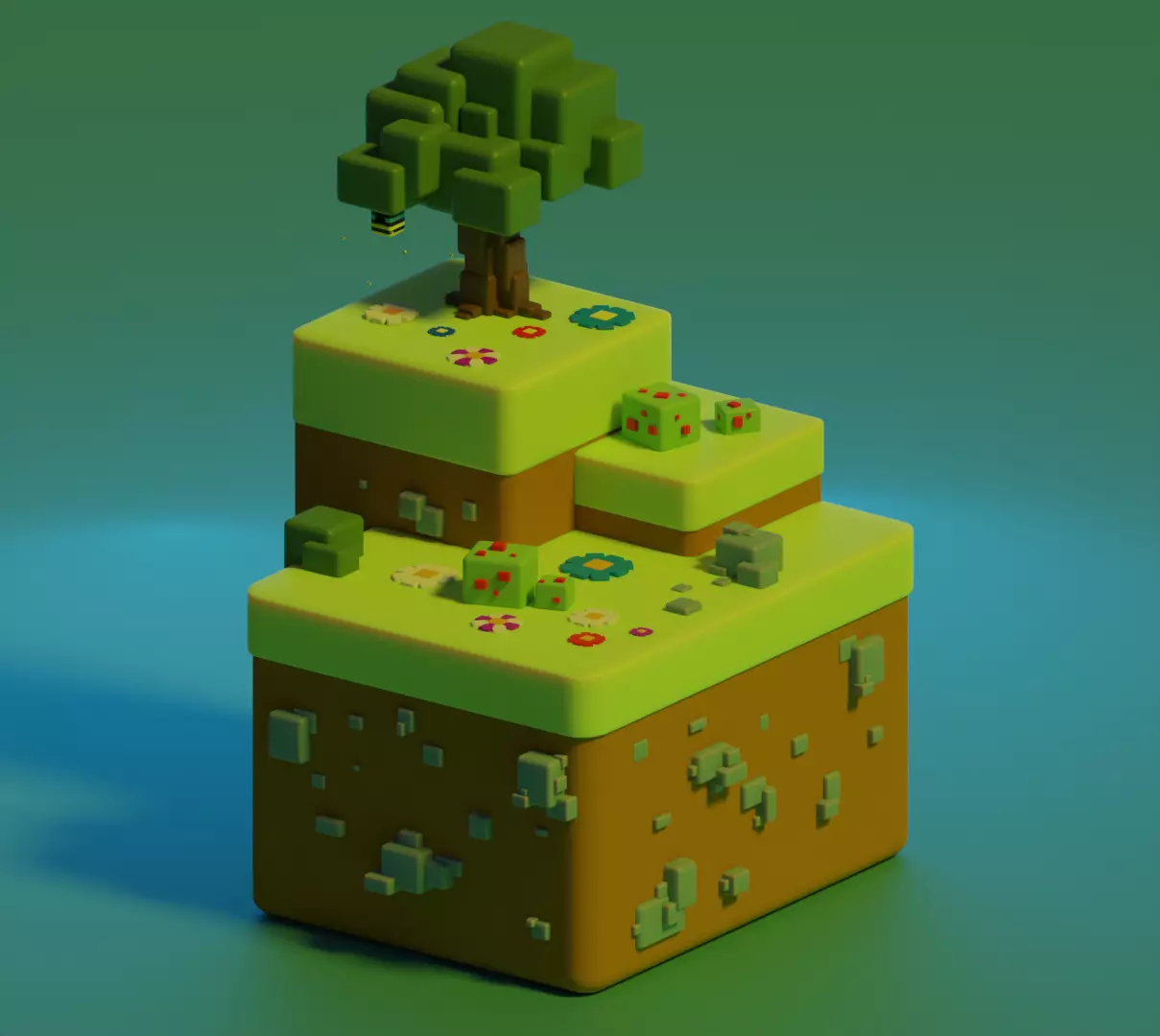 Low polygonal island ready to game. Can be used for 3d printing. Was created in the program blender 3d.All models are created in a cubic style. There are bees, flowers and a tree where the hive is located.Vertices: 82,788Faces: 82,284