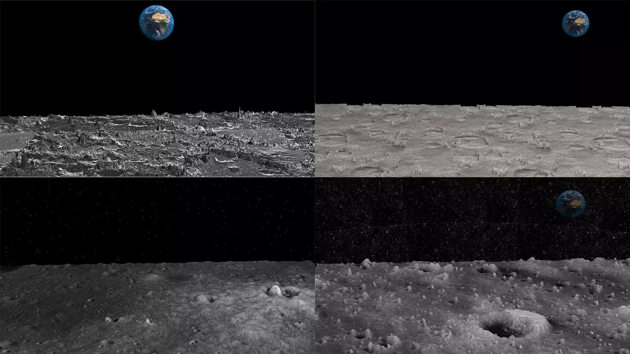 DescriptionDescription Description Description This is a collection of 4 Moon Surfaces Models. Each asset is a high end, photorealistic 3D model, that is created to help you add the realism to your project. Each model is suitable for any visual production - broadcast, high-res film close-ups, advertising, games, design visualization, forensic presentation, etc.