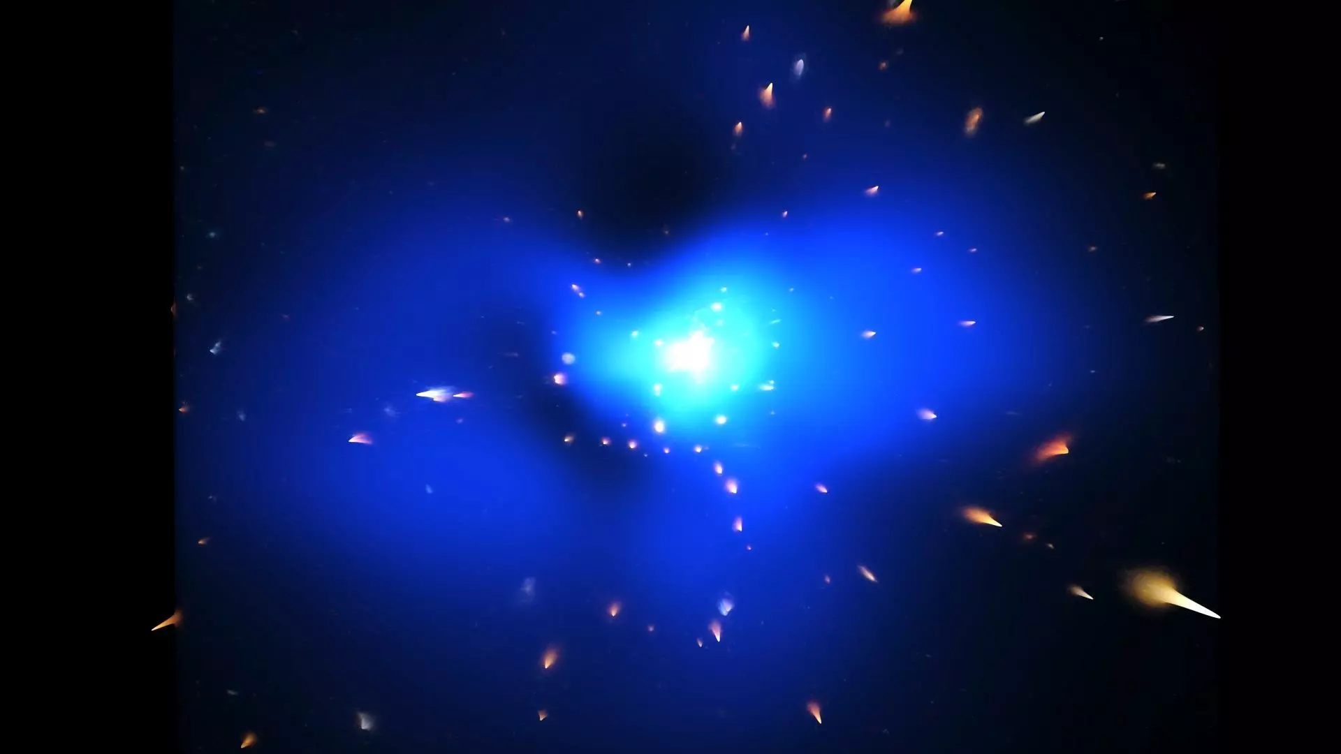DescriptionPhoenix Cluster. The Phoenix Cluster is like a blue bright star. The Phoenix Cluster (SPT-CL J2344-4243) is a massive, Abell class type I galaxy cluster located at its namesake, southern constellation of Phoenix. It was initially detected in 2010 during a 2,500 square degree survey of the southern sky using the Sunyaev–Zeldovich effect by the South Pole Telescope collaboration. It is one of the most massive galaxy clusters known, with the mass on the order of 2×1015 MO, and is the most luminous X-ray cluster discovered, producing more X-rays than any other known massive cluster. It is located at a comoving distance of 8.61 billion light-years (2.64 gigaparsecs) from Earth. About 42 member galaxies were identified and currently listed in the SIMBAD Astronomical Database, though the real number may be as high as 1,000 galaxies. The Phoenix Cluster was first reported in a paper by R. Williamson and colleagues during a survey by the South Pole Telescope in Antarctica, being one of the 26 galaxy clusters identified by the survey. The detection has been conducted at frequencies between 95, 150, and 220 GHz, with 14 of the galaxy clusters detected have been previously identified, while 12 – including Phoenix Cluster, being new discoveries. The would-be named Phoenix Cluster (still identified by its numerical catalogue entry SPT-CL J2344–4243) has been remarked to be having the largest X-ray luminosity of any cluster described by the survey. A bright, type-2 Seyfert galaxy has also been pronounced lying 19 arcseconds from the apparent center of the cluster that has been identified as 2MASX J23444387-4243124, which would later be named Phoenix A, the cluster's central galaxy.