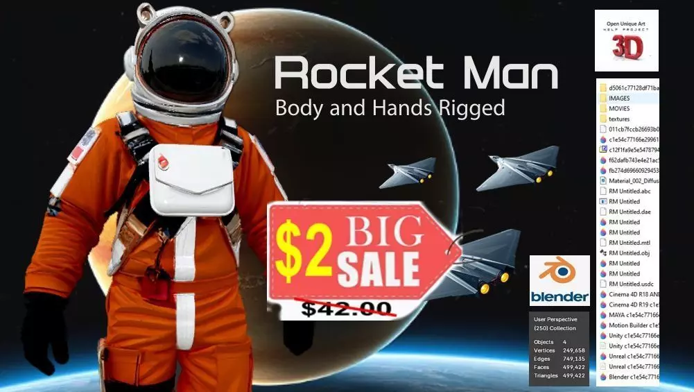 Why You Need This:Whether you're creating a cutting-edge video game, a captivating animation, or an immersive VR experience, Rocket Man is the perfect character to take your project to the next level. With his detailed design, compelling backstory, and full body and hand rigging, he's ready to embark on any adventure you can imagine.