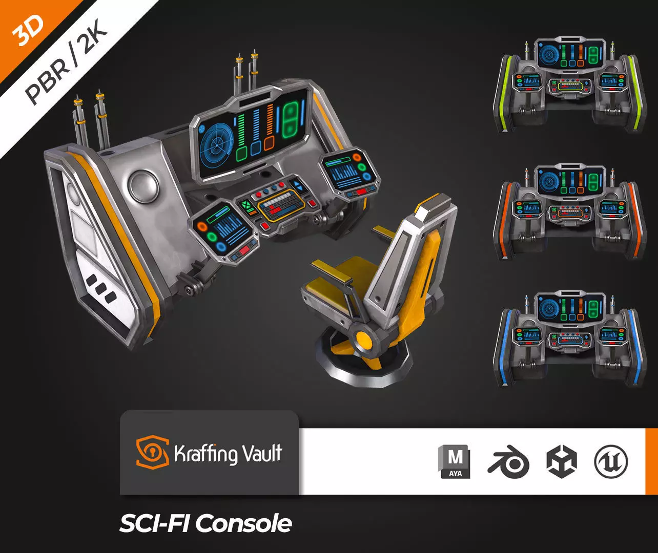 Kraffing presents a 3D modeling SCI-FI Console V1. Recreated design so you can use it in personal projects, scenes, videogames and more.