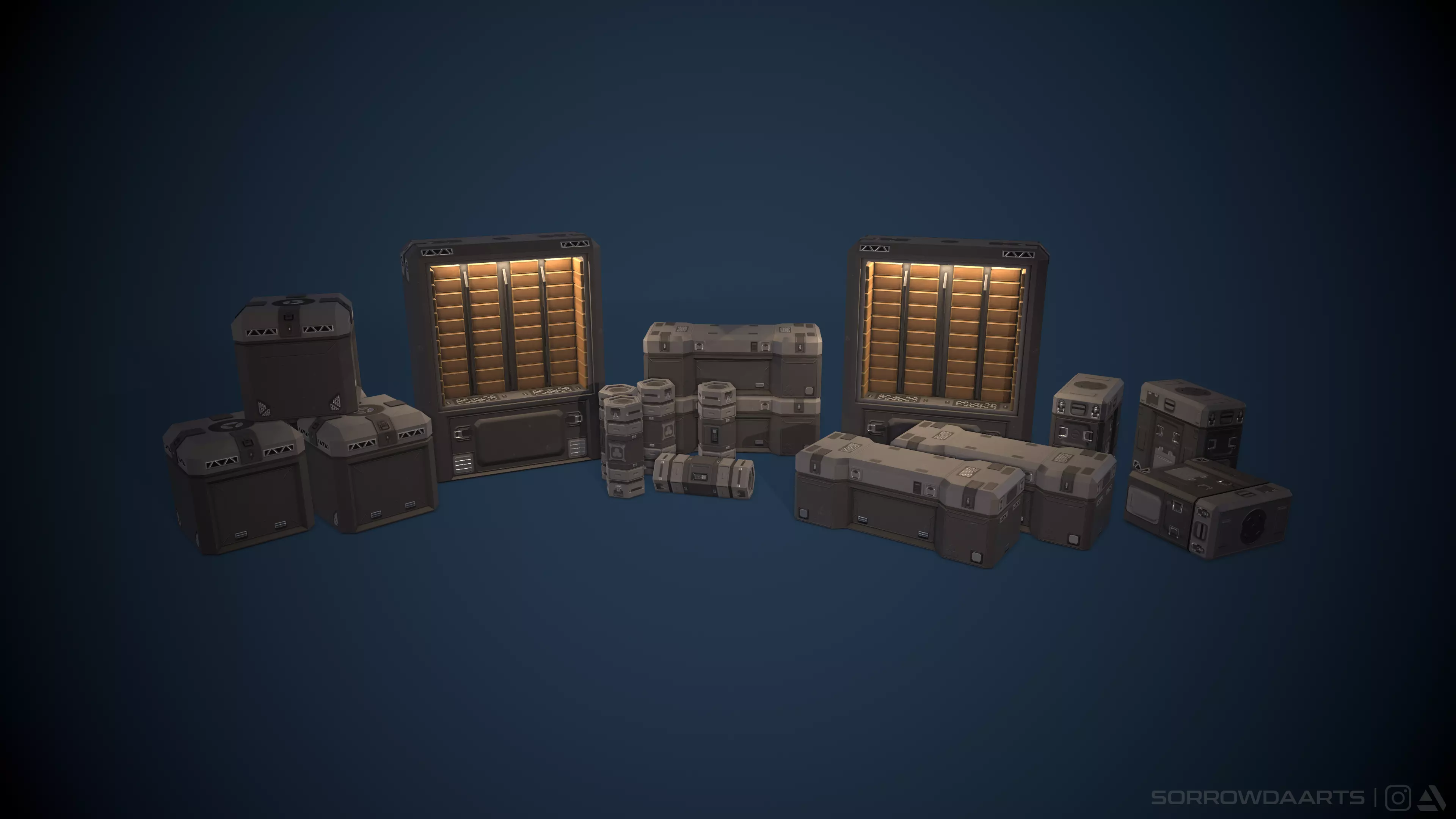 Sci-fi Container Set with different Canisters, Chests and a Locker!All Assets are purely Cosmetic, no Animations or seperatable Parts :) All Assets are Game-Ready!