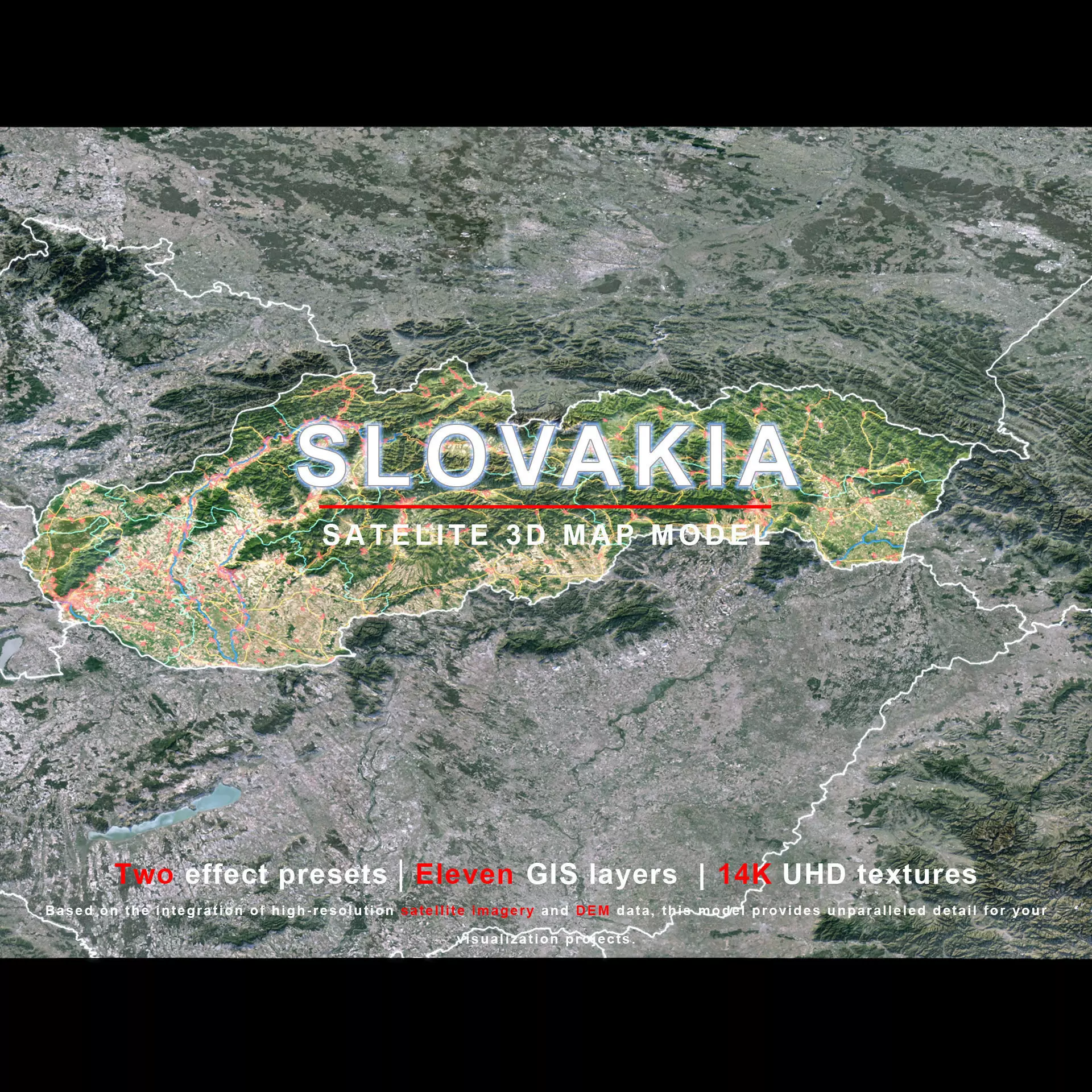 The model includes satellite imagery and masks. The masks are primarily used in material blending to adjust the material representation based on different geographical data. We provide texture maps in both 8K and 14K resolutions.