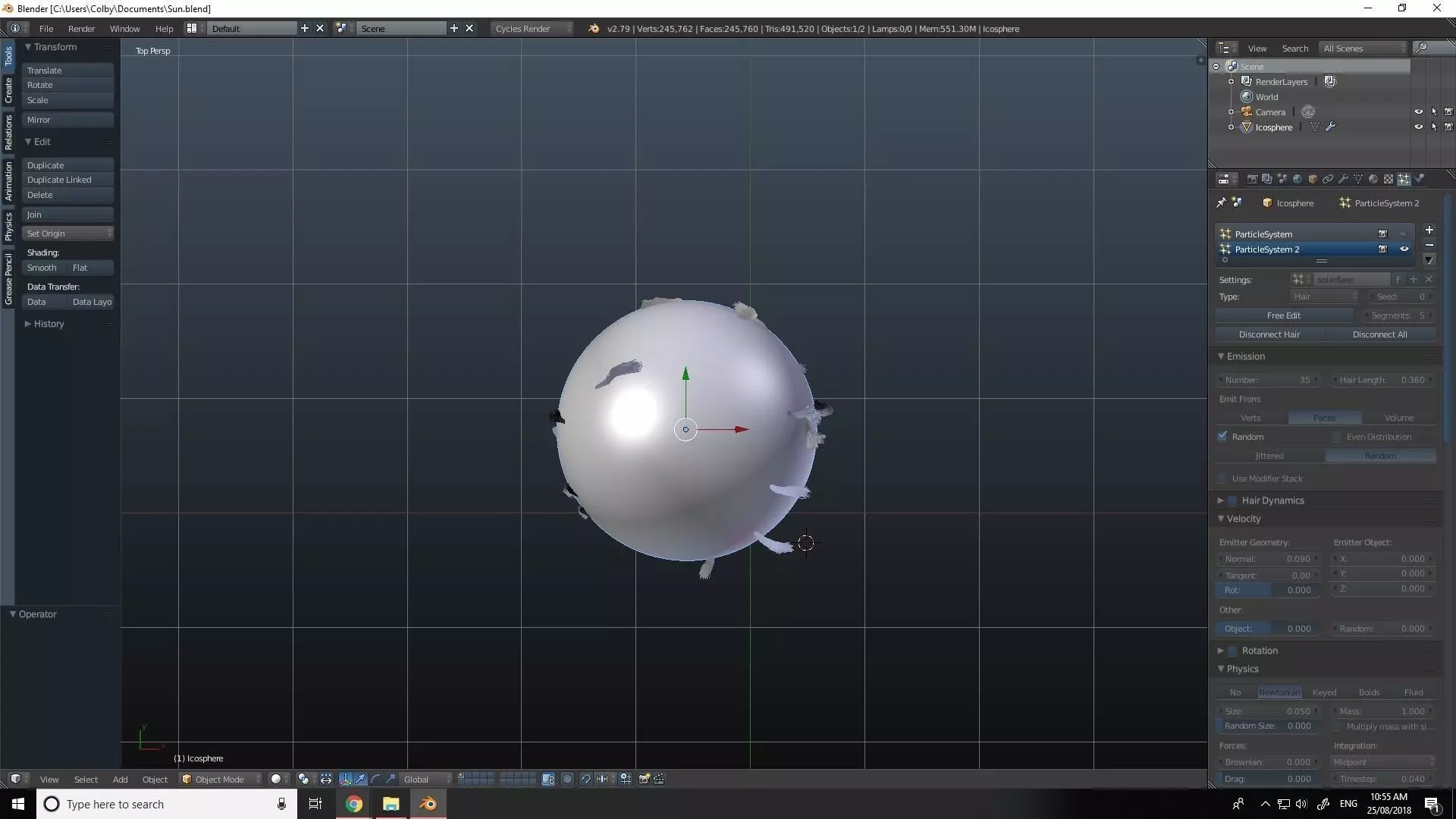 The model has material settings that define how surfaces look (color, shine, transparency, etc.).