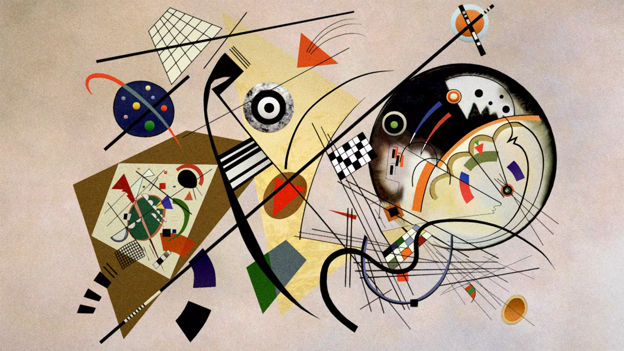 One of the most dominate shapes in ‘Transverse Line’ is a circle,a shape that Kandinsky felt represented peace and the human soul. He went so far as describing a circle as romantic.The circle in this piece is also the most complex element of the painting with various shapes,lines and colours within its border. Although chaotic at a first glance,the painting evokes feelings of optimism and happiness. The painting has similar imagery as Kandinsky’s ‘On White II’, one of the artist’s most famous works that was also completed in the same year.Earlier paintings often featured abstract representations of actual images and figures,including animals and angels. Later works like ‘Transverse Line’ were much more abstract with a greater emphasis on lines,shapes and colour.At the same time, the painter believed in a strong relationship art has with classical music. He attempted to match colours with musical notes in many works!