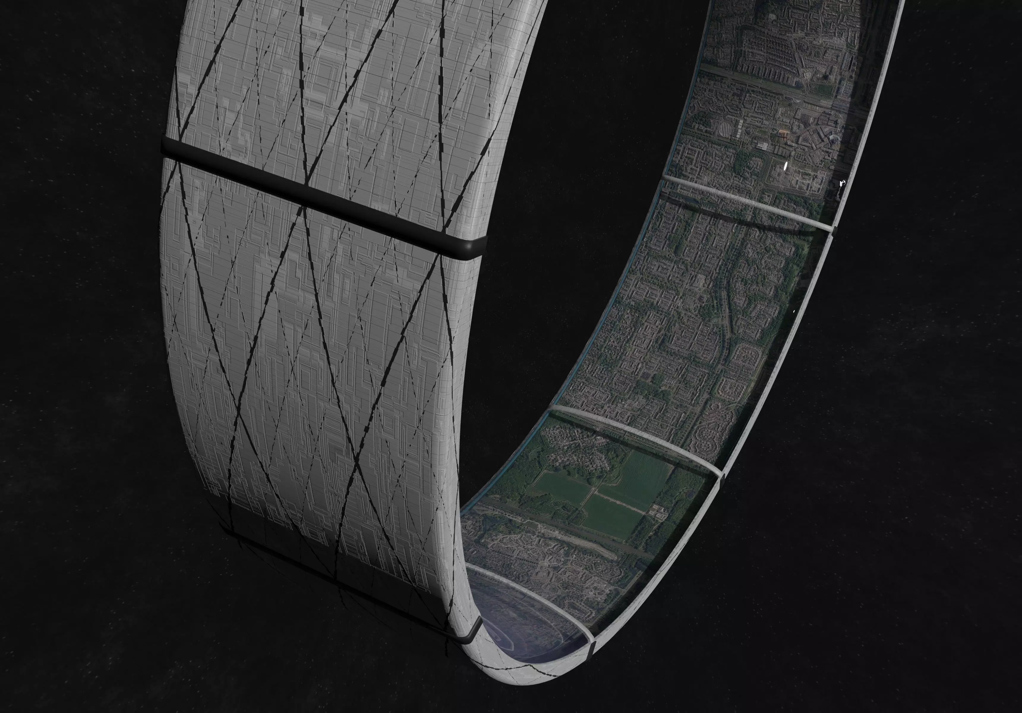Lore and science behind the space habitatThis space station/space habitat is a ring shaped construction of approximately 5 km in diameter. By rotating it creates centrifugal force capable of simulating gravity. This simulated gravity makes living on this station feel extremely natural and can be adjusted to be higher or lower than that of earth, depending on gravity. Unlike the larger rings in my collection, this ring needs to be made with a glass roof in order to maintain its atmosphere. However, because it is smaller it can be build a lot sooner. Even with current level of technology a construction like this is possible to be build. Even although a construction like this would be under a lot of stress from its rotation, we don't even need our strongest materials to build this. High quality steel will do. A ring like this can be build without needing any form of sci-fi explanation or new technologies. So one could say that it is only a matter of time until humanity will build one of these. Considering this is one of the smaller rings in my collection, perhaps it might already be possible within the next 150 years.