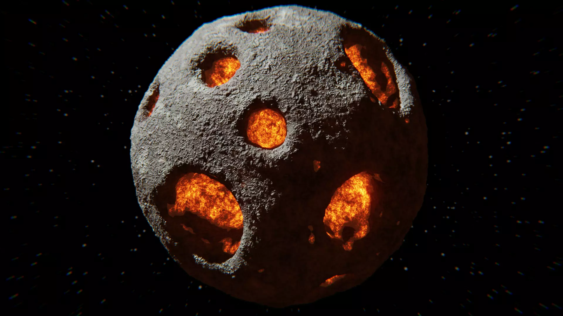 • Detailed Surface Geometry – High-resolution mesh with deep impact craters, layered fractures, and physically inspired surface noise