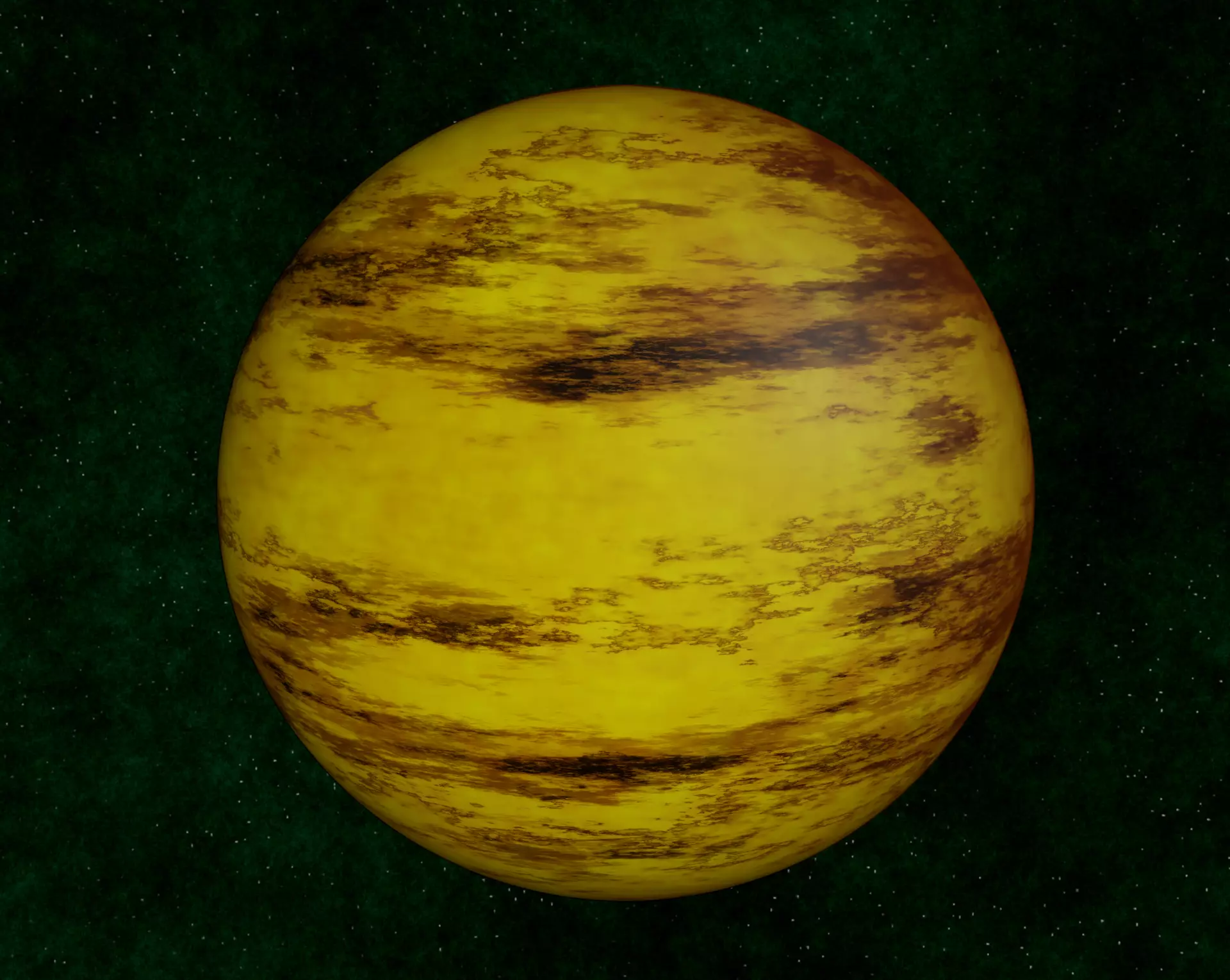 This specific brown dwarf star has a surface temperature fluctuating around 800 to 1400 degrees Celsius, giving it a bright yellow glow like that of hot molten steel. This brown dwarf is the hottest and densest of brown dwarfs in my collection. This brown dwarf is hot enough to start to actually start looking like a star like our sun