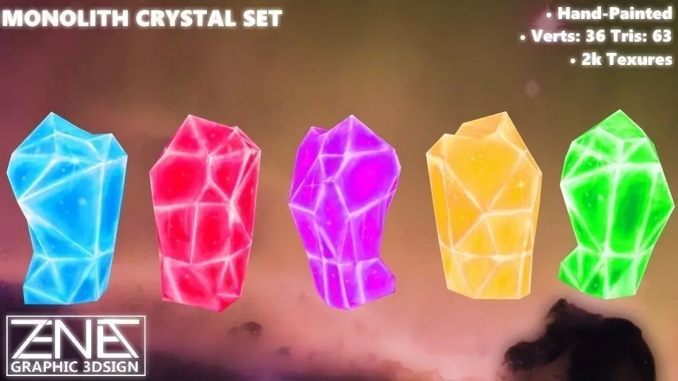 Include FIVE (5) different monolithic rock crystals. Perfect for mmo, rpg, space, mobile, and other types of games.