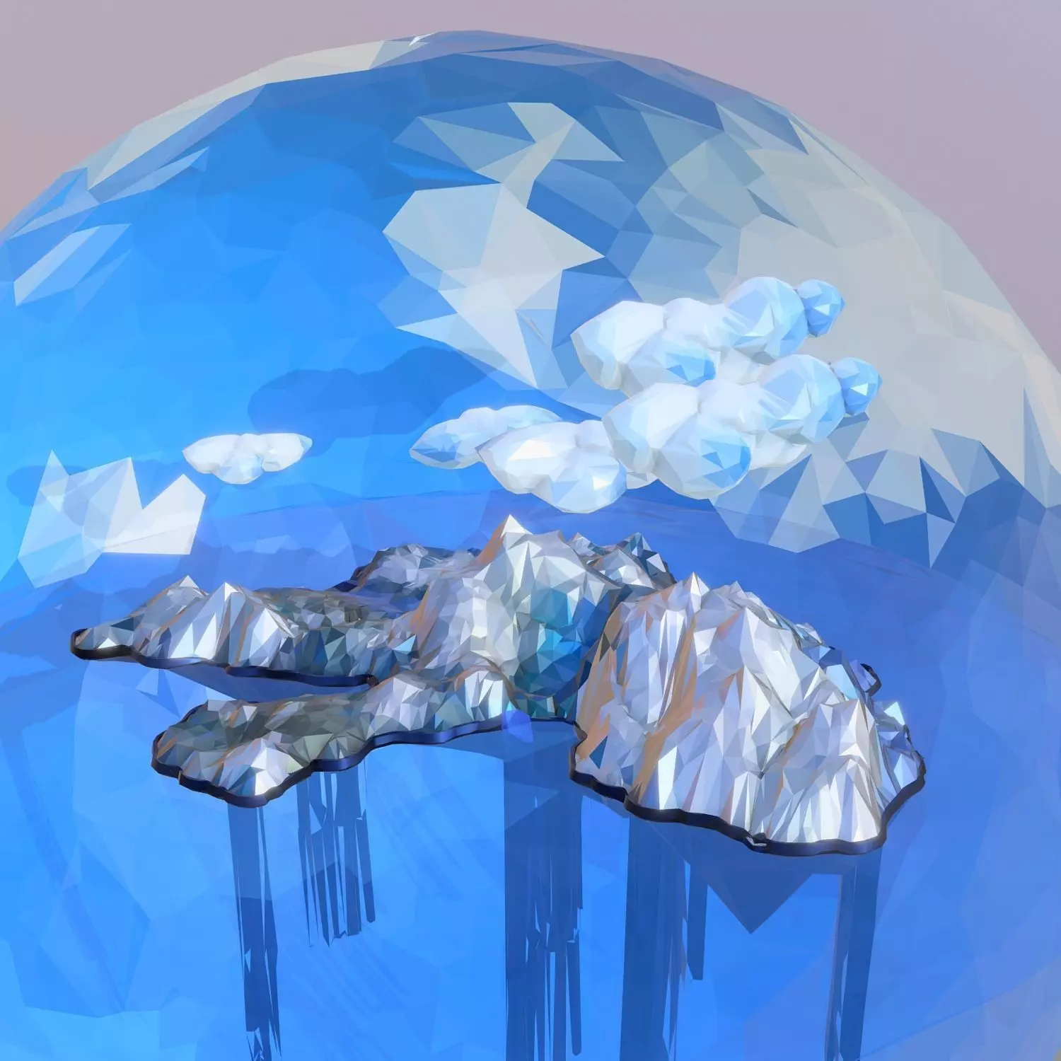 Snow Ice Island Mountain Waterfall Low Polygon Art Low-poly 3D model
