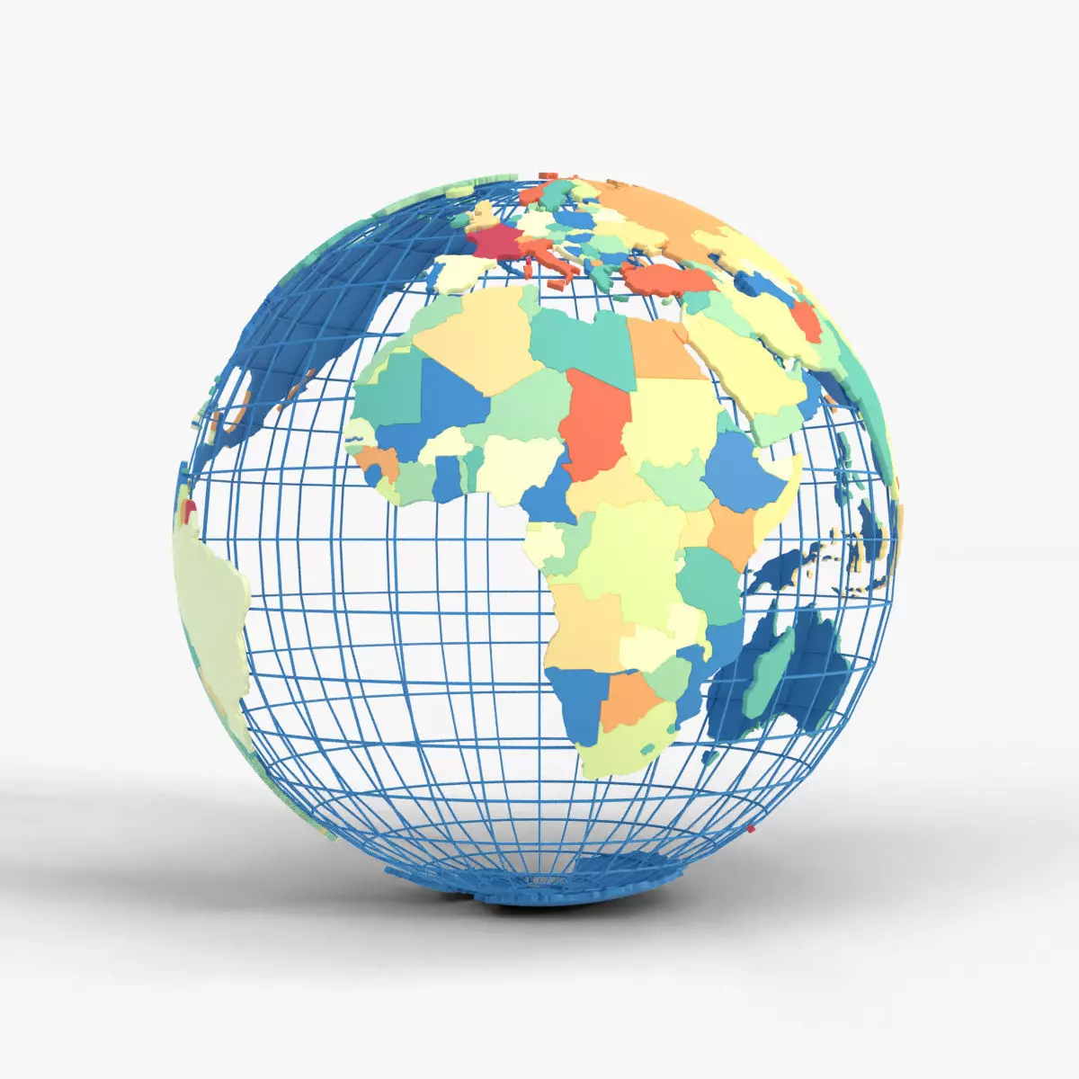 Low Poly Globe with political country divisions with a resolution of approx 1:110 million.