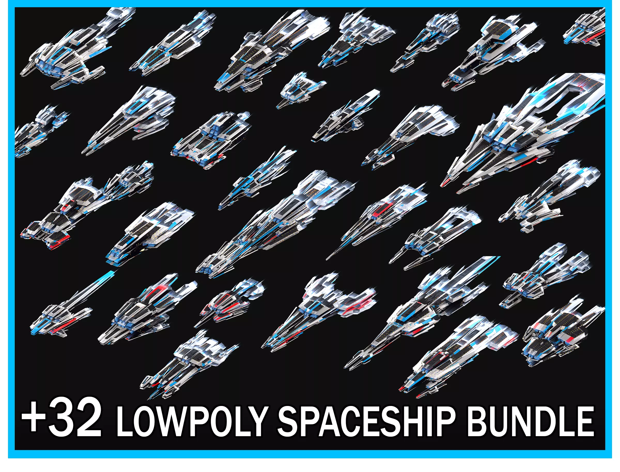 32 Lowpoly Sci-Fi Spaceship Kitbash Bundle Pack Bundle Package Low Poly Space Starship Ship