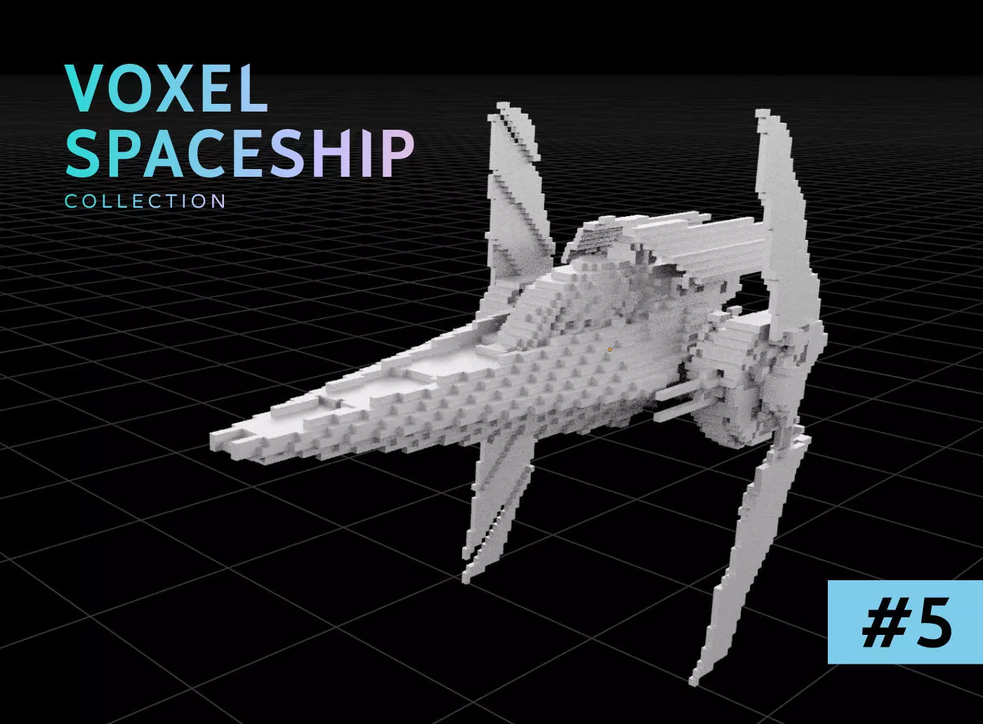 3D model of a spaceship in voxel/pixel style #5. Clean Optimized Mesh for your projects or NFT collections.Video example - https://youtu.be/1HzNSroOLsQ