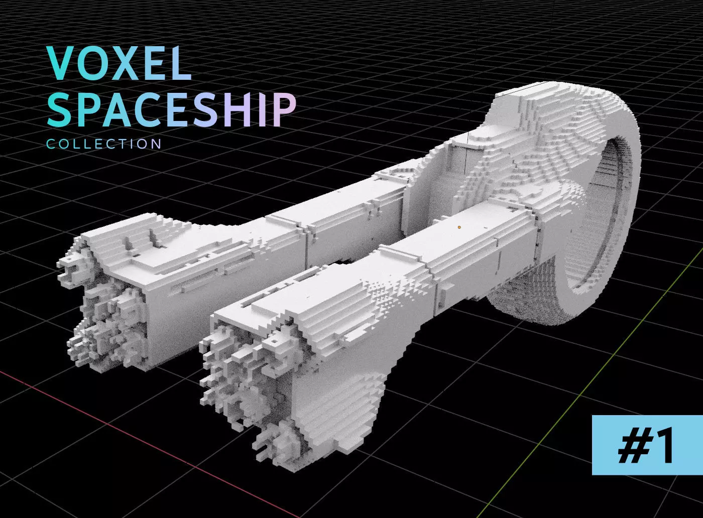 3D model of a spaceship in voxel/pixel style #1.Clean Optimized Mesh for your projects or NFT collections.Video example - https://youtu.be/1HzNSroOLsQ