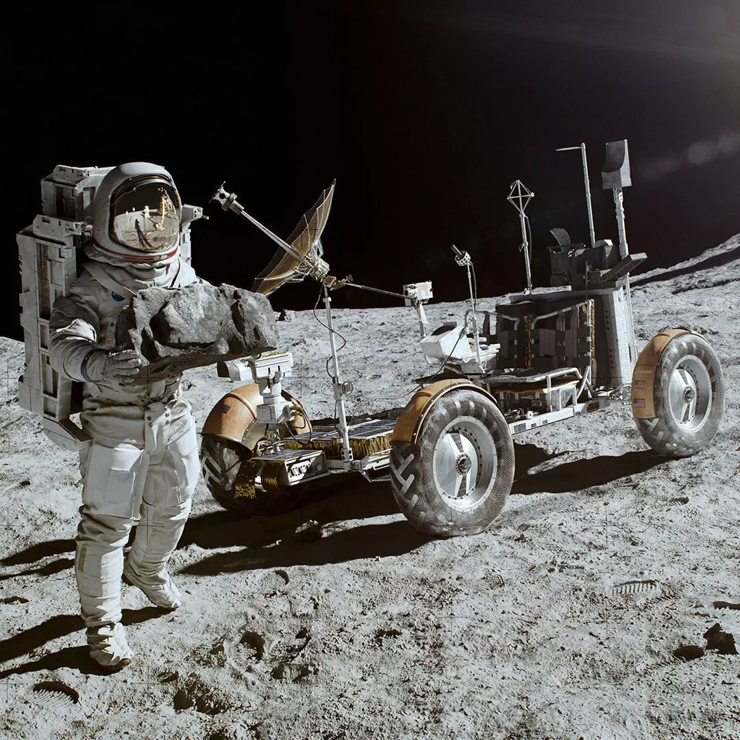 Space Rover on the Moon Ground Surface