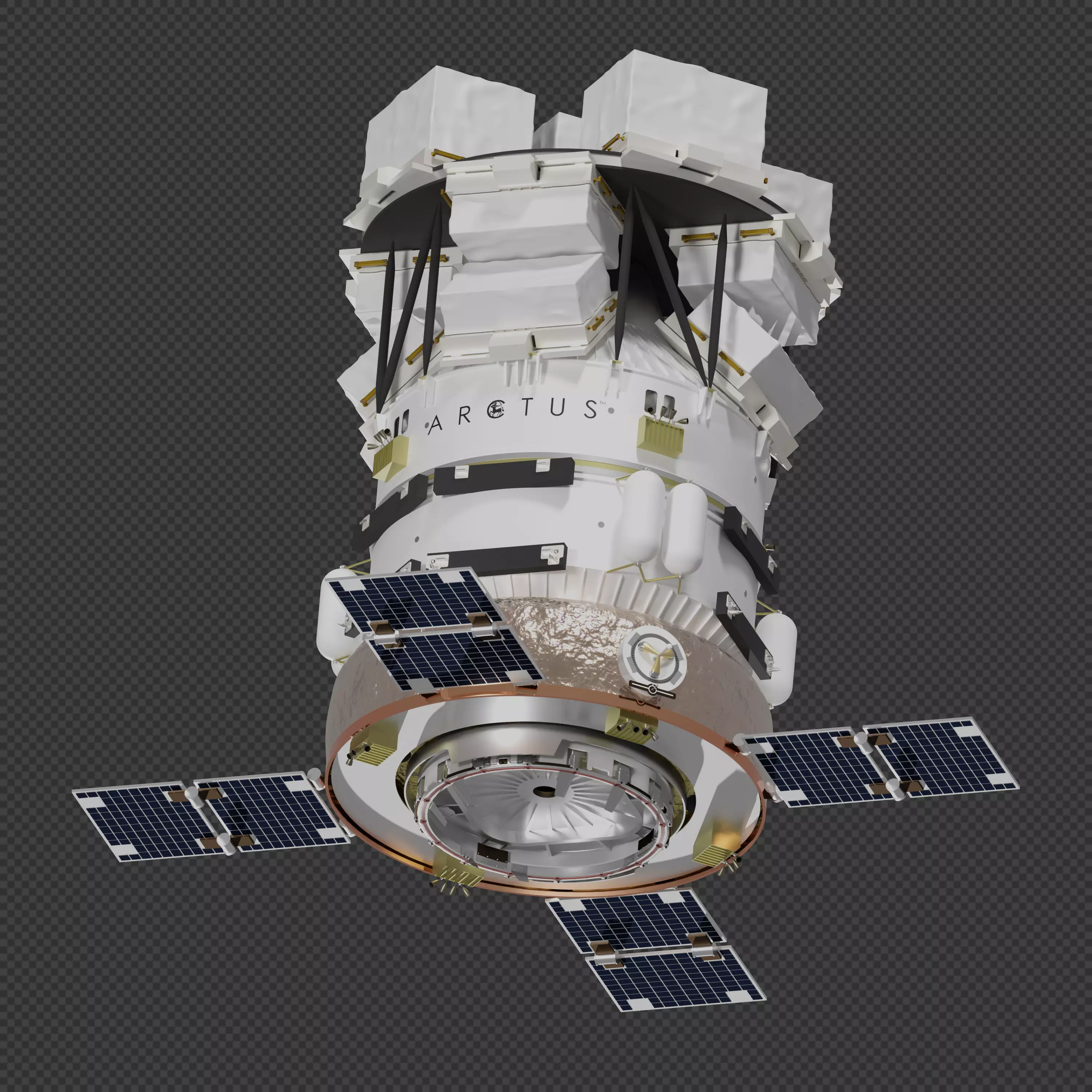 ARCTUS was notable for its almost-total reliance on existing hardware, virtually every component was already flying on another vehicle. The pressurized cargo module was built from a Centaur propellant tank, its other primary structures were built using the Centaur Forward Adapter or various payload adapter structures. The main propulsion system was based on Centaur's RCS. Its solar arrays and batteries were based on an existing satellite design, its avionics were from a combination of Centaur and a satellite bus, and its environmental control/life support systems, Flight Releasable Attachment Mechanisms (FRAMs), Common Berthing Mechanism (CBM), and other equipment were directly based on ISS or Spacehab systems. Launch would be aboard a ULA Atlas V or Delta IV rocket. The only major new development would be an inflatable heat shield used for reentry of the pressurized cargo module