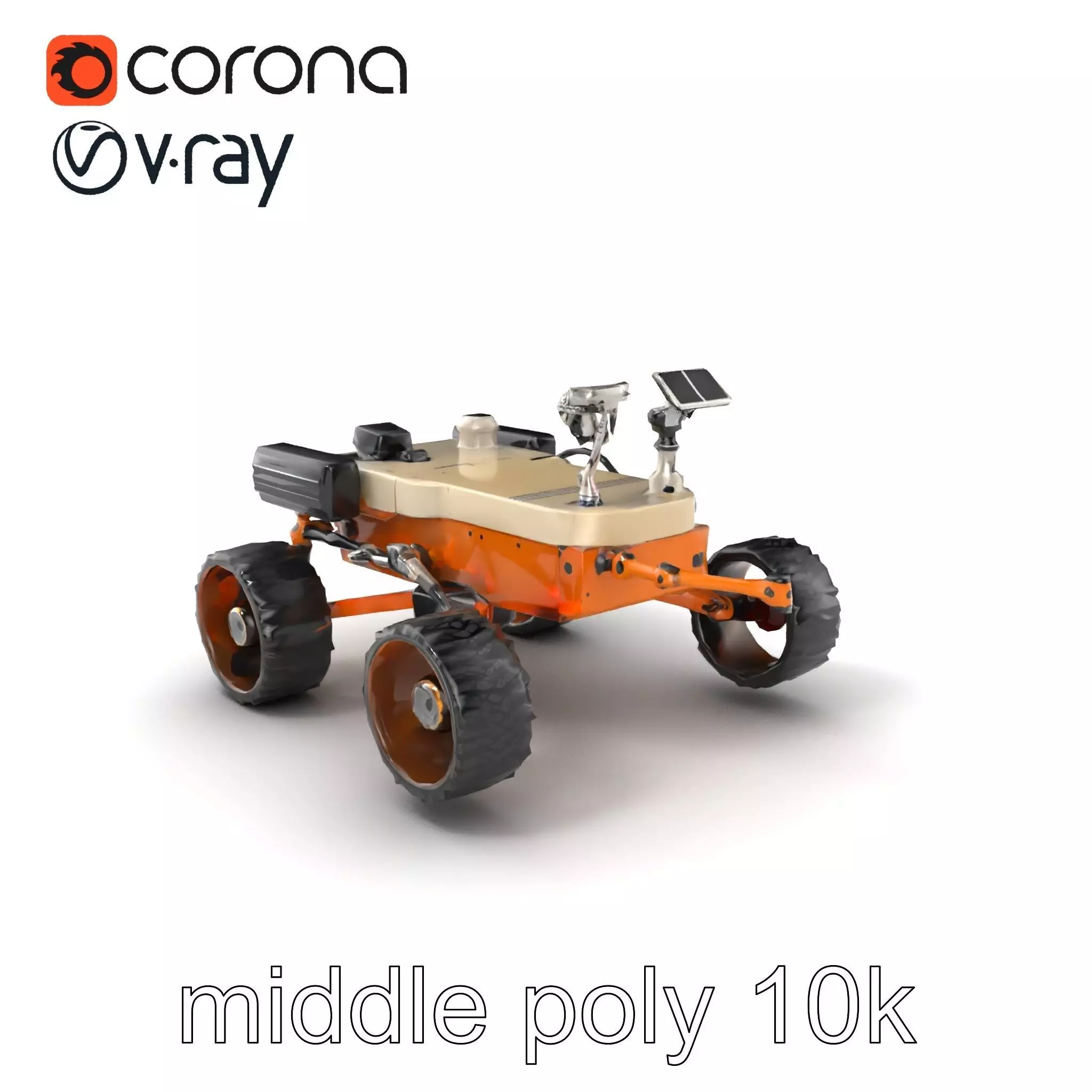 Each model has 3 levels of detail: low-poly, middle-poly, and high-poly, which allows for the use of this model in production rendering (such as 3ds Max, Maya, Cinema4D, Blender, Vray/Corona/Cycles and all others), game engines (Unity and Unreal compatible), and interactive presentations, providing a choice of detail based on the LOD System principle. Ideal for simulating space missions or educational demonstrations, this model features a reinforced frame, rugged treads, and a versatile sensor array. Solar-charging capability and environmental resistance make it suitable for various virtual terrains. The model's textures are PBR, Diffuse, NormalMap, and reflection/roughness/metallic, which are suitable for any modern rendering engine. All models are accurately unwrapped and have no overlapping UVs. All textures are 4096*4096 in size. Please like and leave a comment if you enjoyed this model!