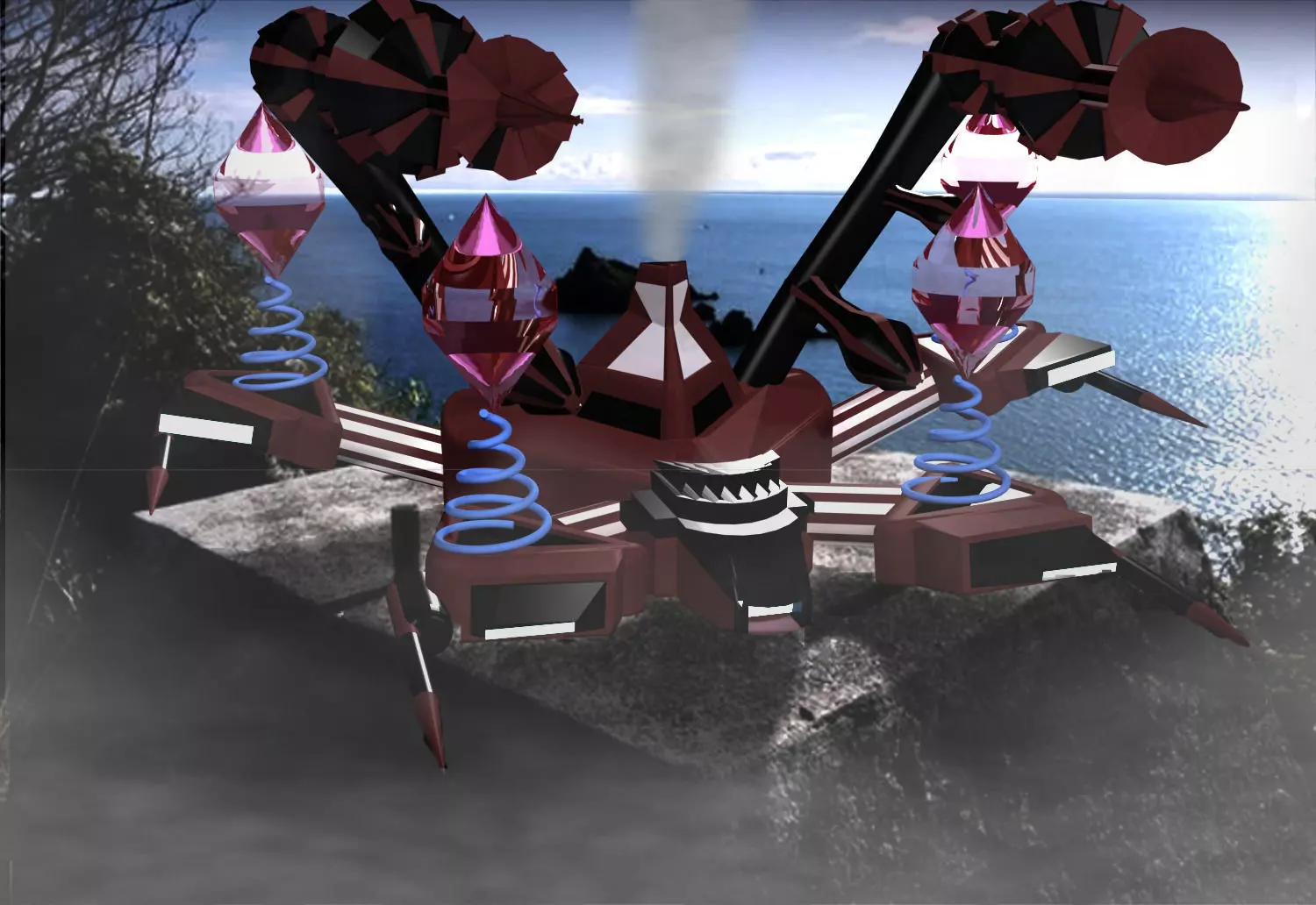 I designed this space ship that has laser missiles along with bomb missiles and Satellite detectors. It has also two control rooms each one placed for a different purpose; one for fire attack and one for satellite connections. You can call it also a Transformer since it can wrap around itself and hide all it's parts to to into a completely new shape."animation soon"