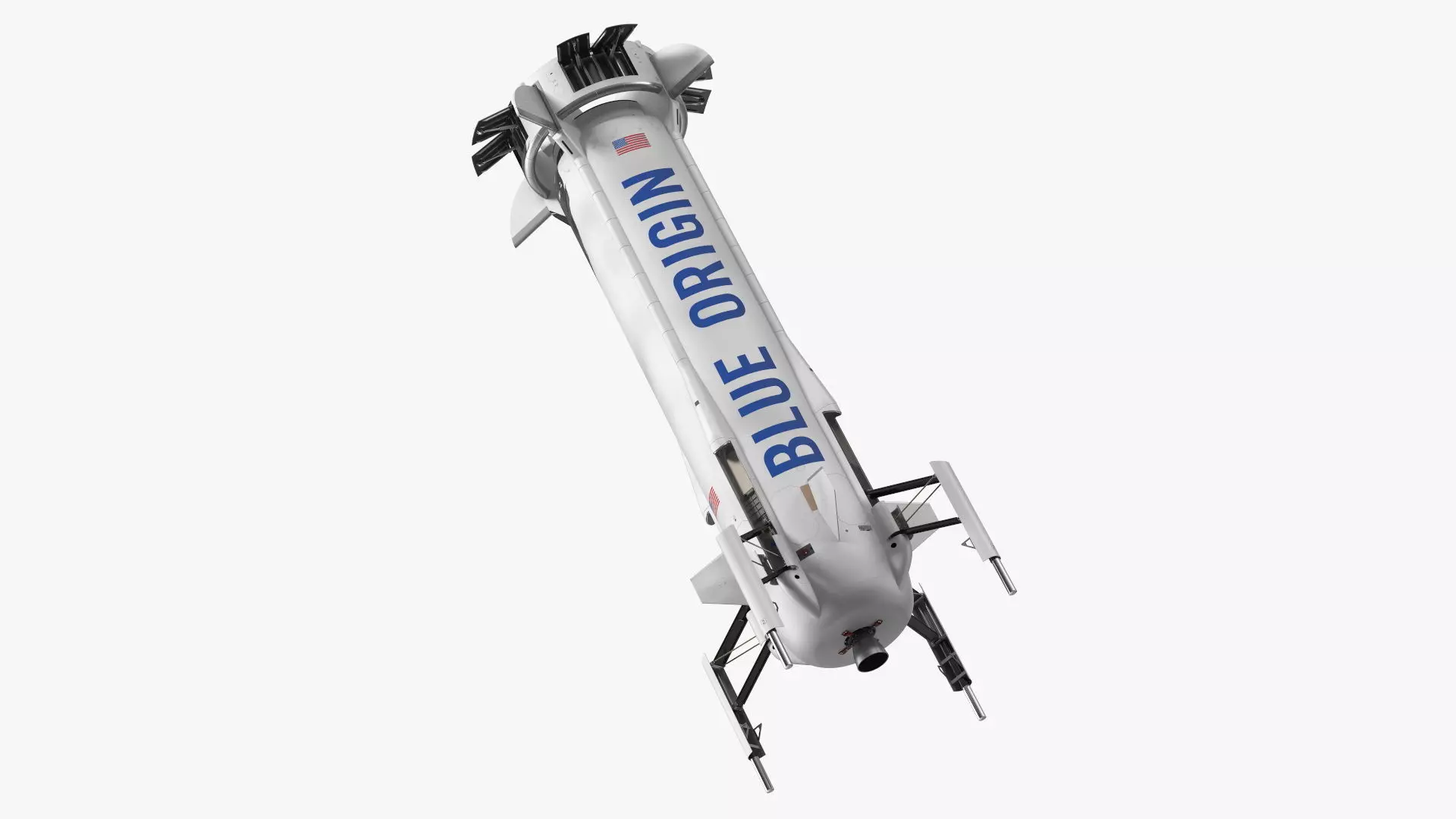 Blue Origin New Shepard Rocket Booster is a three-dimensional model of a space tourism equipment which is facility for suborbital flights.