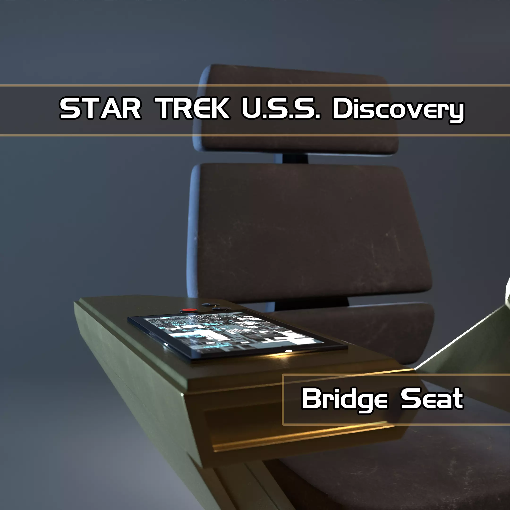 The design is the closest Star Trek replica of the bridge seat from U.S.S Discovery. It also can be used in any sci-fi or futuristic concept you want or even customized.The mesh has been made in both high and low poly versions with 2K textures (4k normal map) and is subdivision-ready for your most demanding renders, video footages or games.The textures rely on references and TV serie.