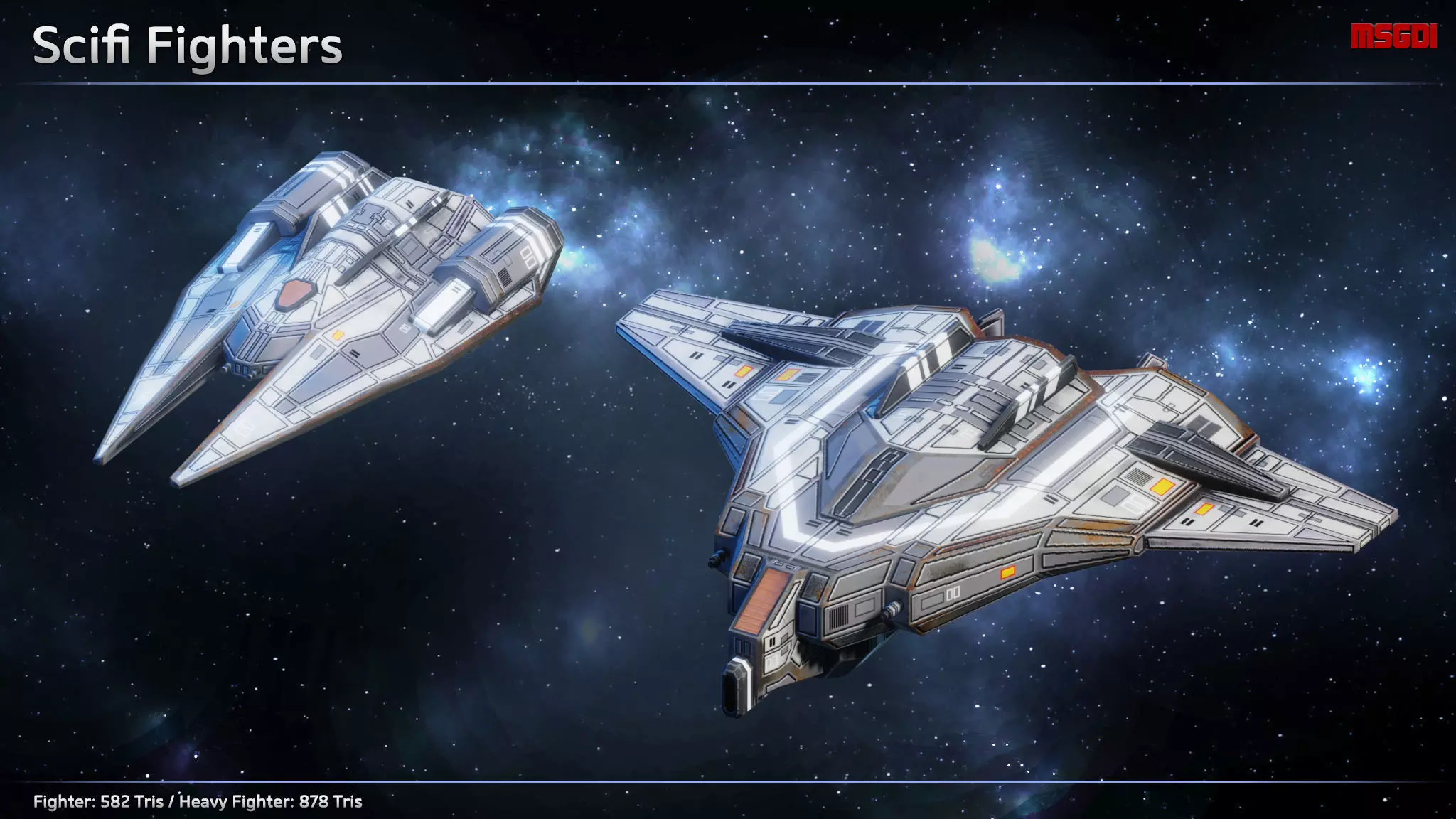 This pack contains a complete fleet of fighters, bombers, scouts and carriers, ready to reinforce your fleet. They can be used in space RTS games, in a sidescroller or in a top-down shoot’em up.