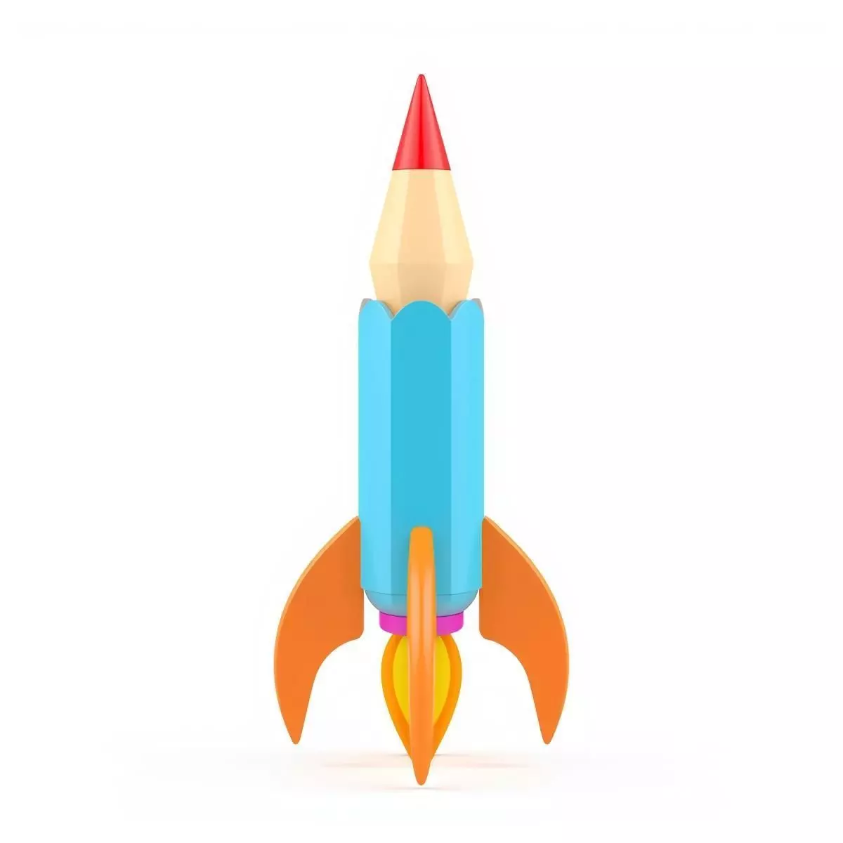 PencilRocketCreativeSchoolEducationalToyKidsCartoonSpaceUniqueFunLearningStationarySpaceshipStylizedWhimsicalArtDesignImaginationVibrant