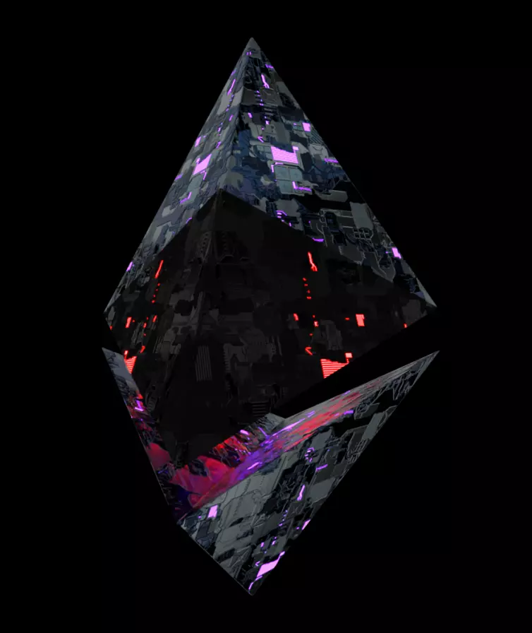 Ethereum 3d Icon model, that looks like spaceship, made in Blender 2.81