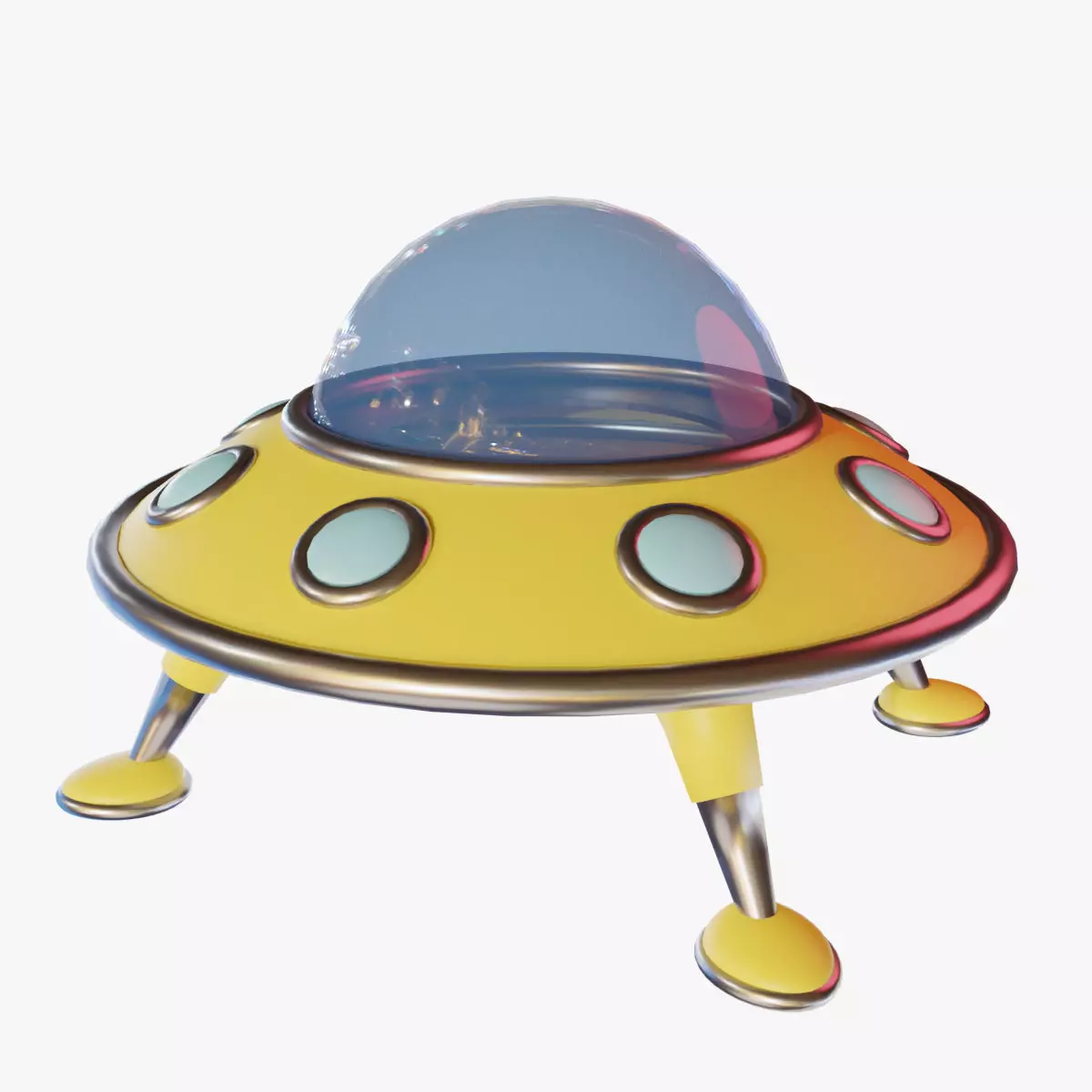 A cartoon flying saucer. Ready for import to game engines using image textures and also set up with procedural materials for Blender rendering. There are tris and quads versions of model in blend file. 4k textures for body - metallic, diffuse, AO and roughness (png);1k textures for glass - roughness and diffuse with alpha (png).