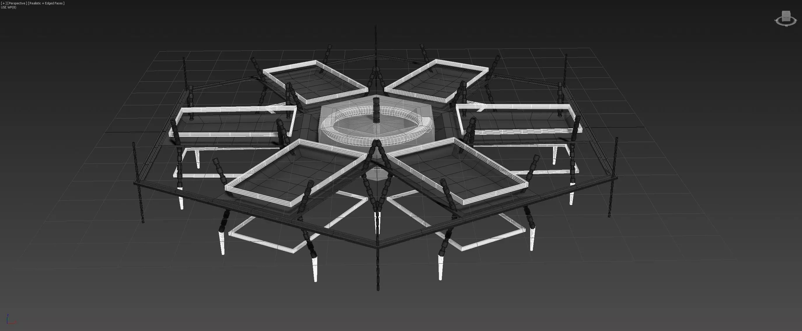 if we copied the entire hexa lifter tile and used it 7 times in total, 1 [ bigger scale?] in the center and 6 all round the center in 60 degree increments, we could even apply different voltages to different sections, allowing us to balance or steer the entire craft. maybe the cores can lift their own small power supplies.