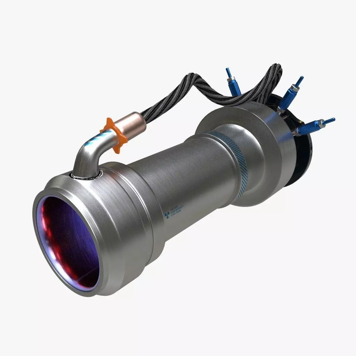 An ion thruster, electric propulsion used for spacecraft propulsion. It creates thrust by accelerating ions with electricity.