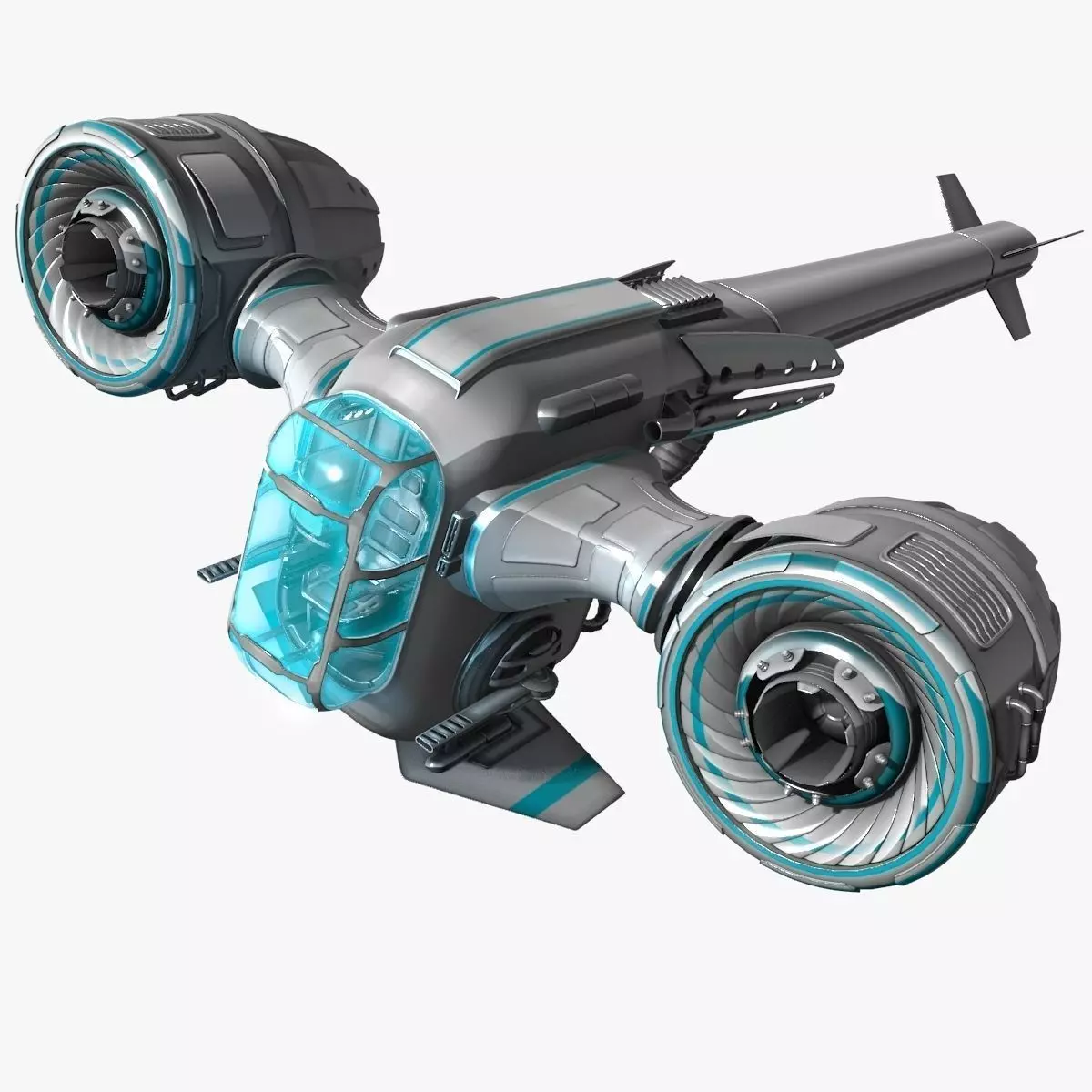Most objects are textured and unwrapped, with the exception of cockpit lights which have a glow material. All textures are color maps, some use alpha. The shiny reflection effect is created using a procedural blend texture reflection mapped. (Blend version only) A similar PNG has been provided with the OBJ version, but has not yet been applied to the model. Blend version comes with a simple camera and lighting system, as well as a simple node setup to add a touch of glare to the image. Blend version also come with cockpit lights.