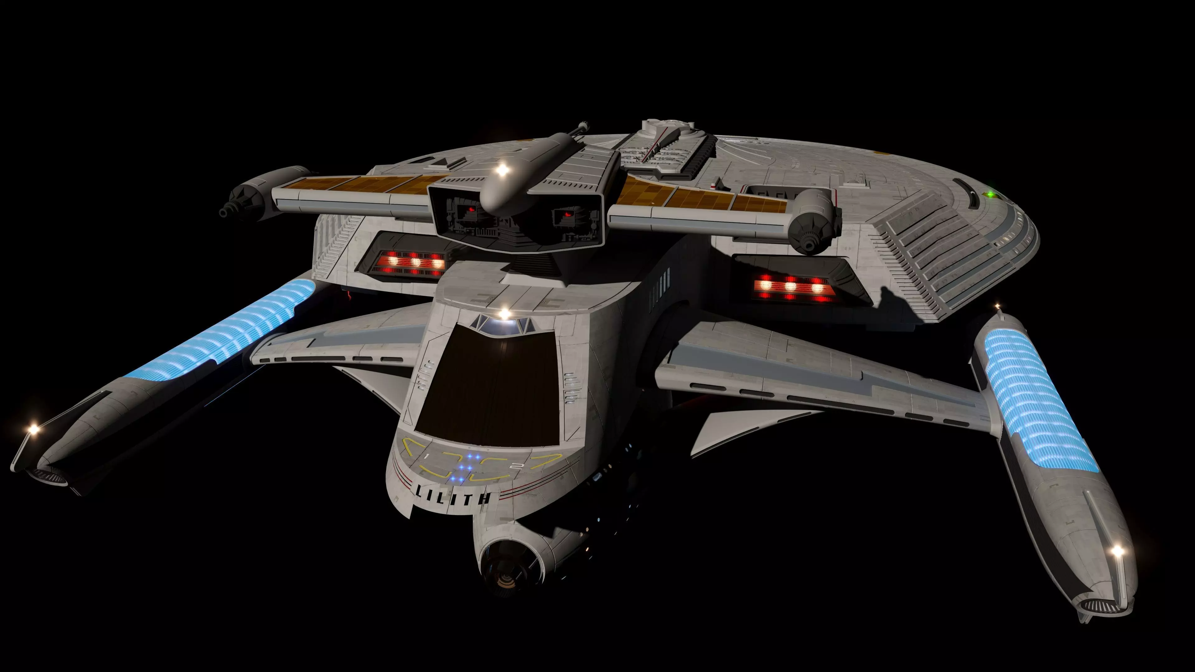 STAR-TREK inspired Federation Starship U.S.S. Lilith high quality photorealistic 3D model.
