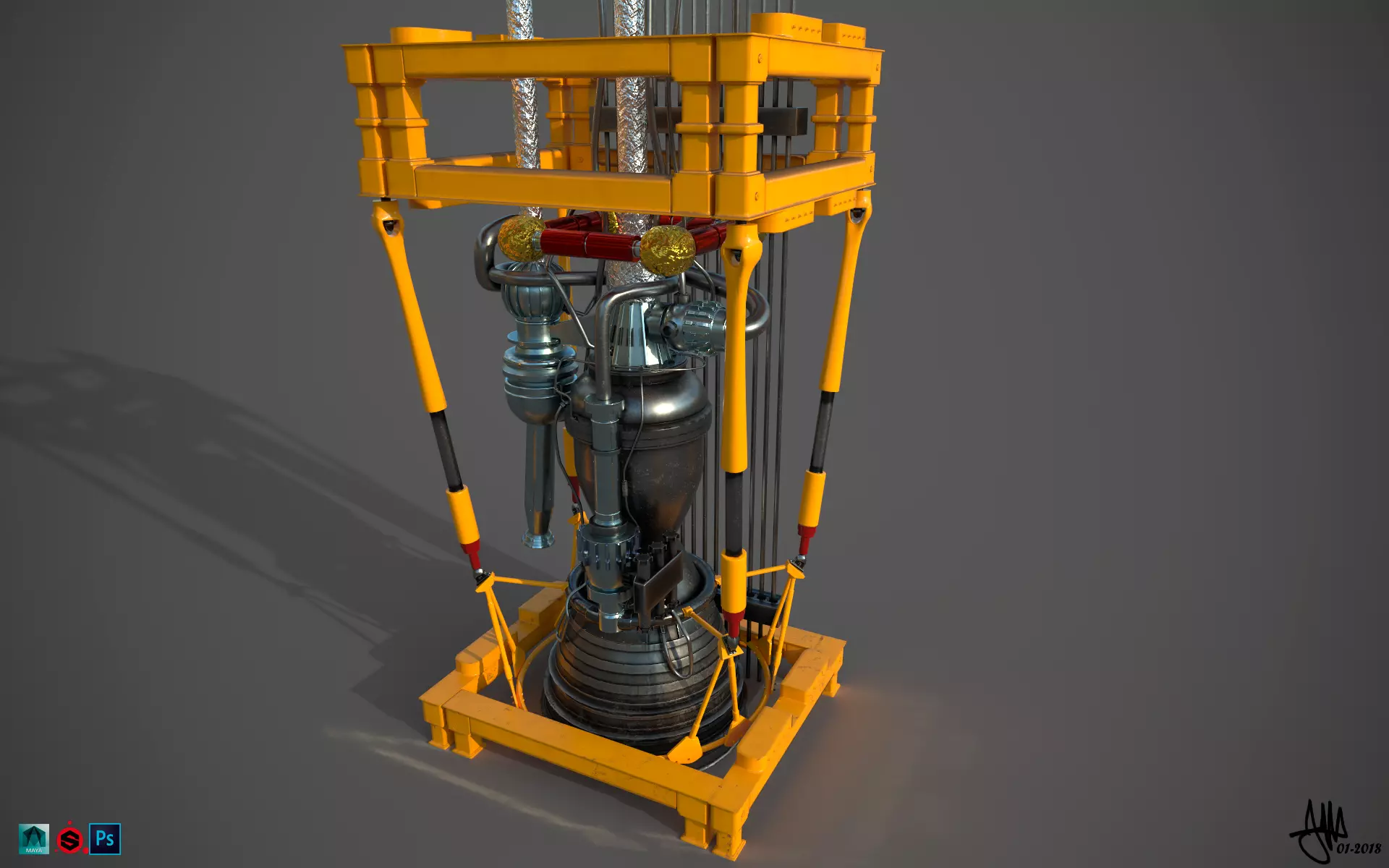 Personal interpretation of a nextgen rocket first stage space engine. 27 of these babys will power up latest SpaceX Falcon Heavy to Mars. More info about this image here https://www.artstation.com/artwork/woZag