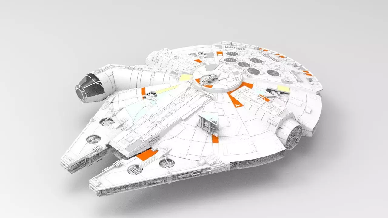 Solo: A Star Wars Story depicts the YT-1300 Corellian light freighter being embodied by L3-37 (Phoebe Waller-Bridge). The ship is primarily commanded by smuggler Han Solo (Harrison Ford and Alden Ehrenreich) and his Wookiee first mate, Chewbacca (Peter Mayhew and Joonas Suotamo), and was previously owned by gambler con-artist Lando Calrissian (Billy Dee Williams and Donald Glover). Described as being one of the fastest vessels in the Star Wars canon, the Falcon looks like a worn-out junker, but despite her humble origins and shabby exterior, the Millennium Falcon has played a critical role in some of the greatest victories of the Rebel Alliance and the New Republic.
