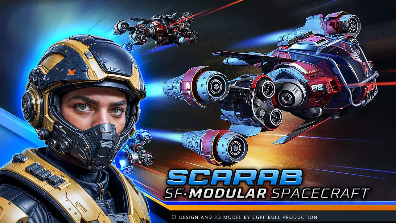 Attention: THIS MODEL IS NOT INTENDED FOR 3D PRINTING, NO Stl files included. This Original package contains one Modular SCARAB Starfighter. This design is my own concept, does not repeat any existing work. You can use it without a doubt about copyright.