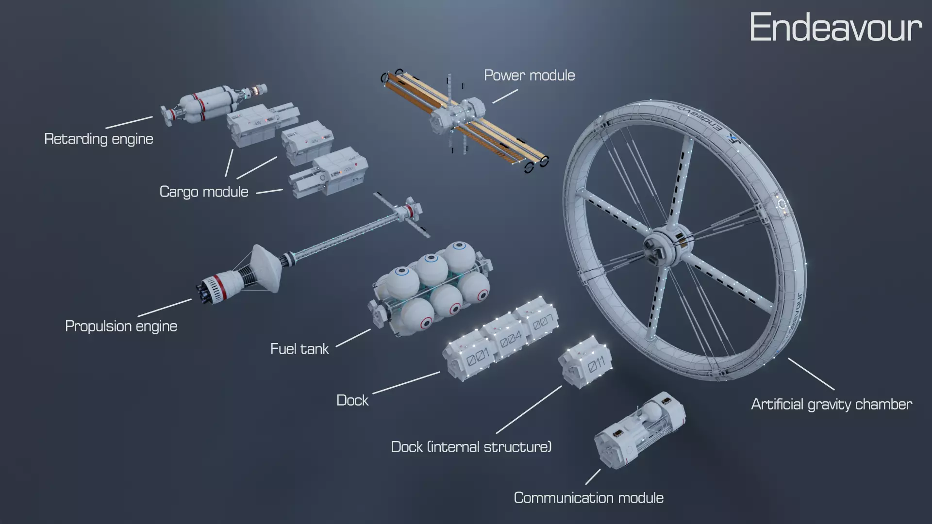 The spacecraft model adopts modular structure, the whole ship is assembled by 11 modules with different functions. The modular assembly method can provide full freedom, the interface of each module is completely unified, and countless combinations can be assembled without modifying any model. The dock module, gravity module and power module are animated and bound. The internal structure of the dock is built and perfectly matched with the Hercules class transport ship. The gravity module gravity ring can rotate independently, and the solar panels and thermal radiation panels on the power module are bound with skeletons. The model was made in blender, where the material mapping of each individual module was made using a PBR workflow and UV split using UDIM. The model is commercially available.