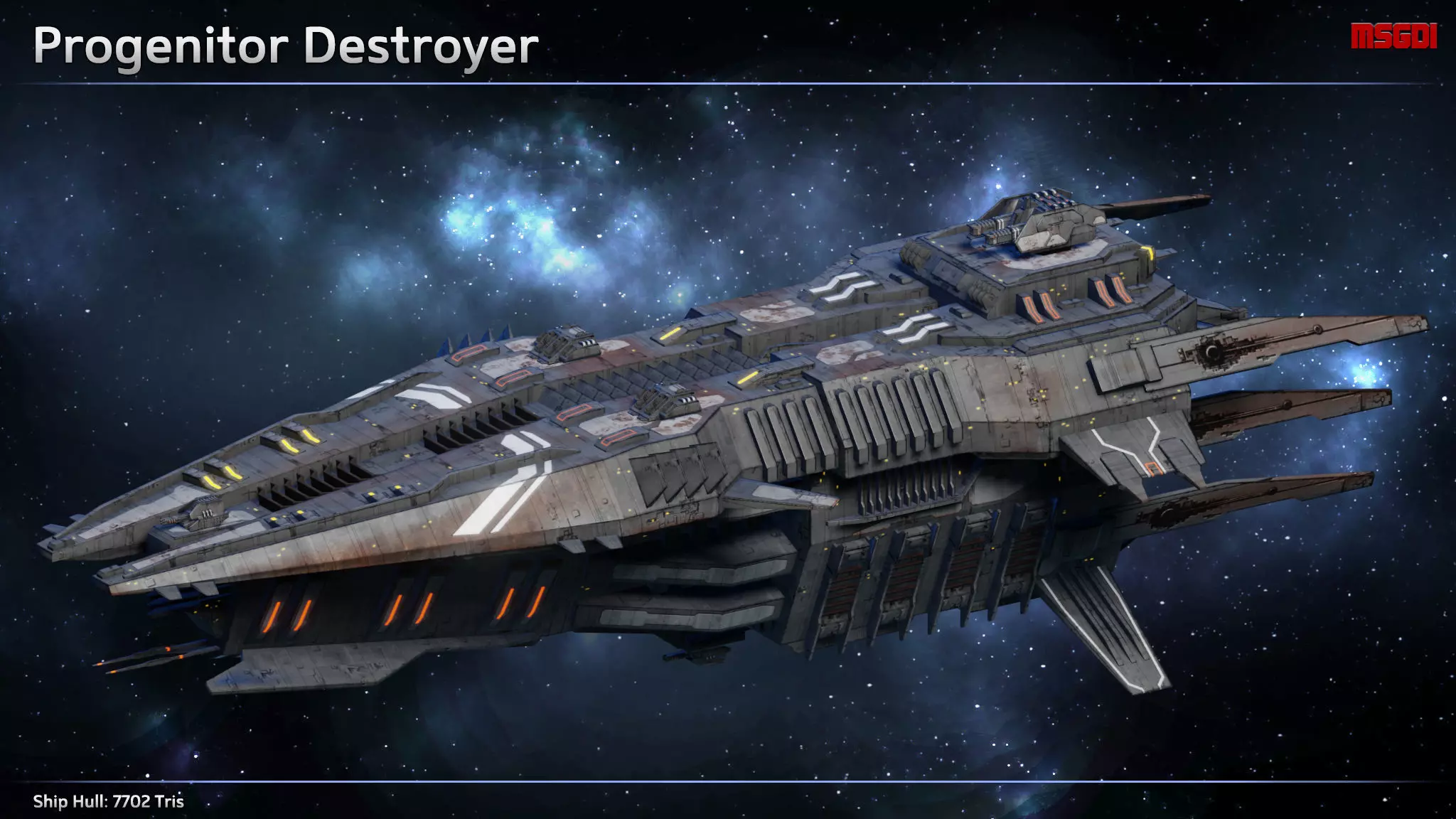 This pack contains a Progenitor Destroyer with weapons and equipment. It can be used in space games.