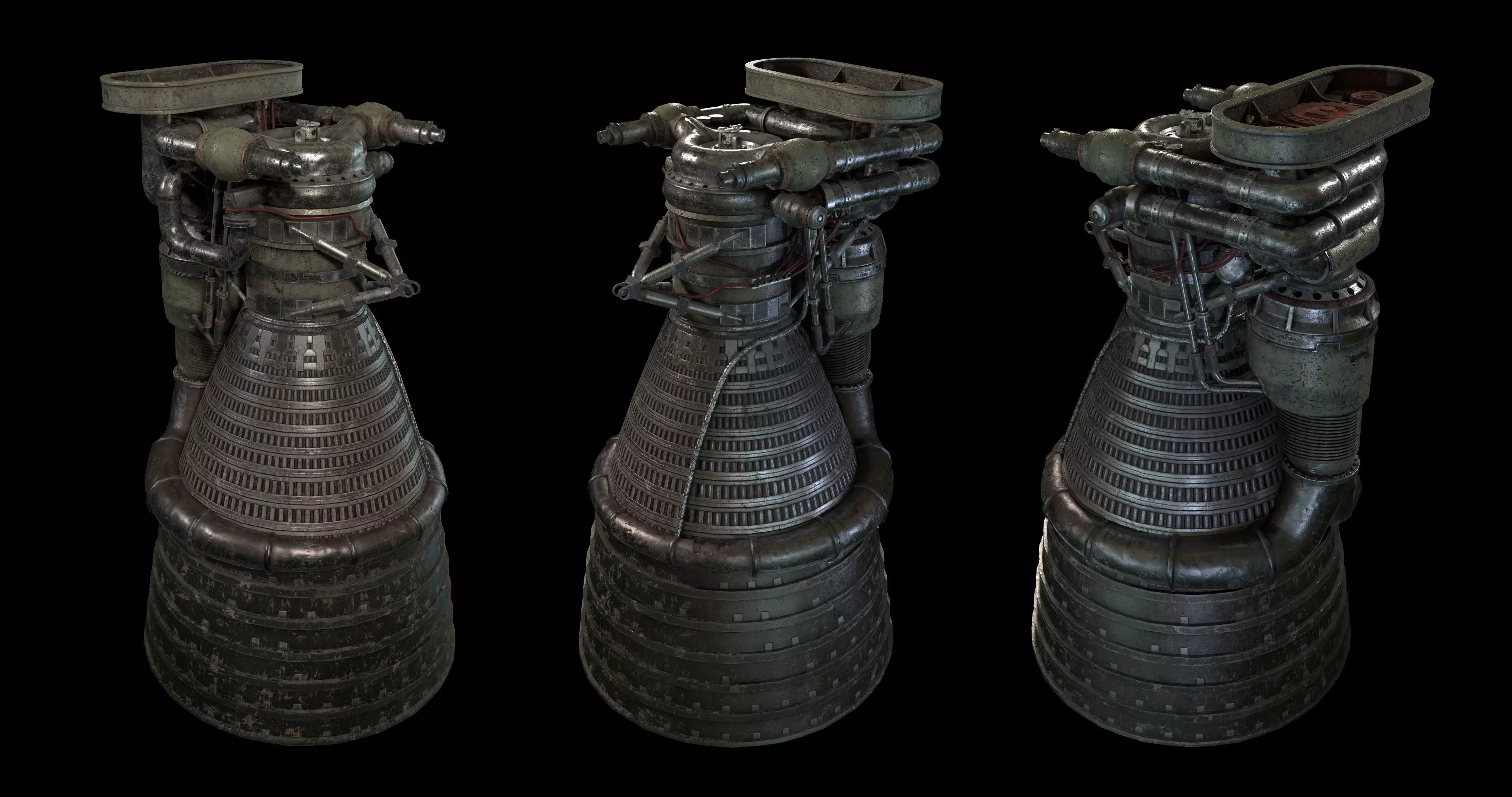 The F-1 Rocket Engine it was used in the Saturn V rocket in the 1960s and early 1970s. I used almost 26k polys and 2 sets of 4k textures.
