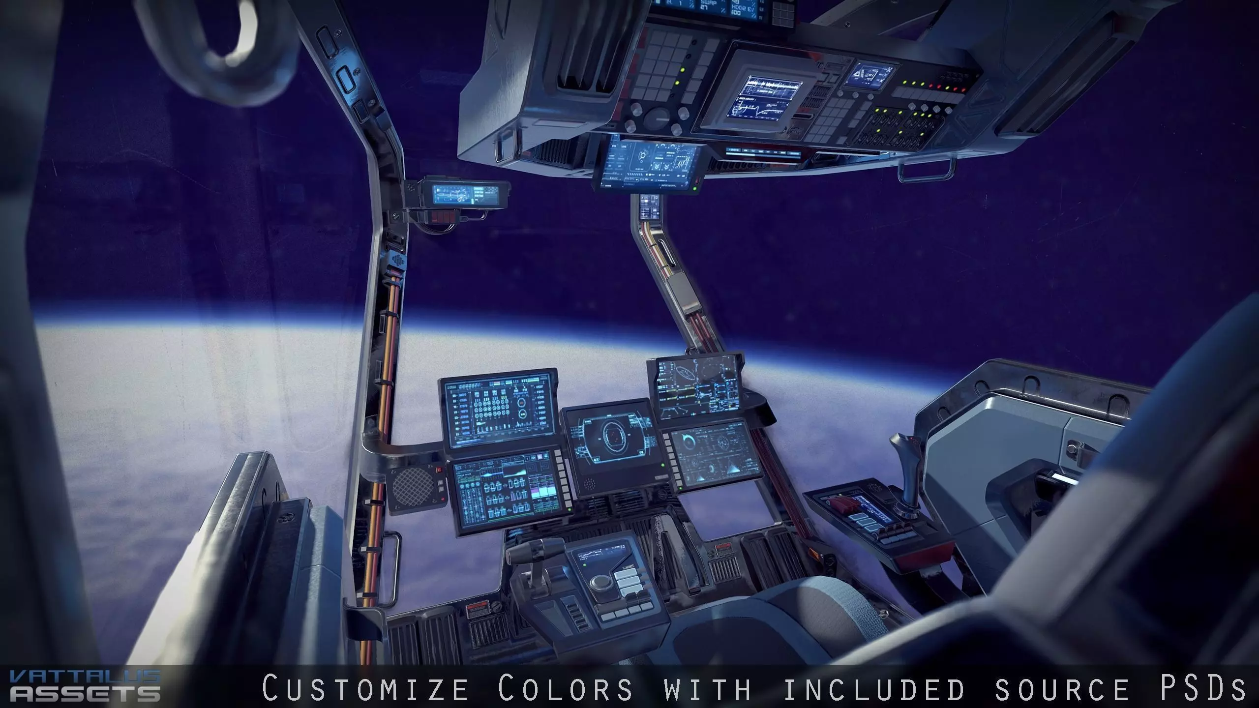 AAA Quality, highly detailed sci-fi cockpit, perfect for any space-sim or VR experience. With 4K resolution PBR Textures.
