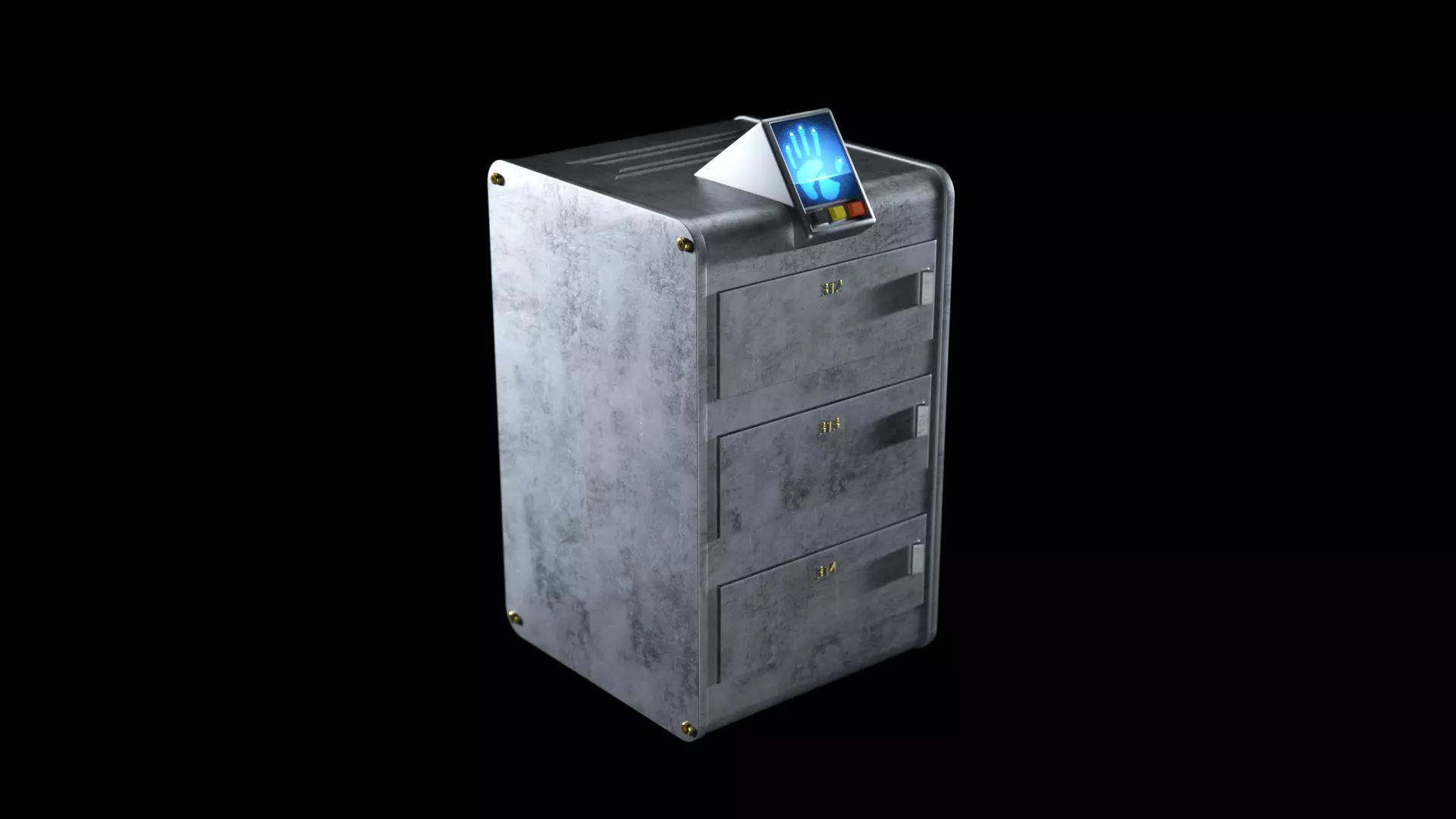 High detail and mid-poly Sci-Fi vault or safe for documents or jewelry with handprint sensor. You can subdivide any part to increase photorealism (doors) . You can customize it for any reason and add any other numbers, textures, parts and cables. Details: The model is divided on objects for any changing in your work process or animation. With texture and ready for renders in Octane. Formats: Native format (.c4d) - R21. No 3rd party software/plugins are required for using the model, but Octane texture setup (2020, 1.5 R4) provided in the c4d file! You can easily change it for native. All material included in tex.zip.