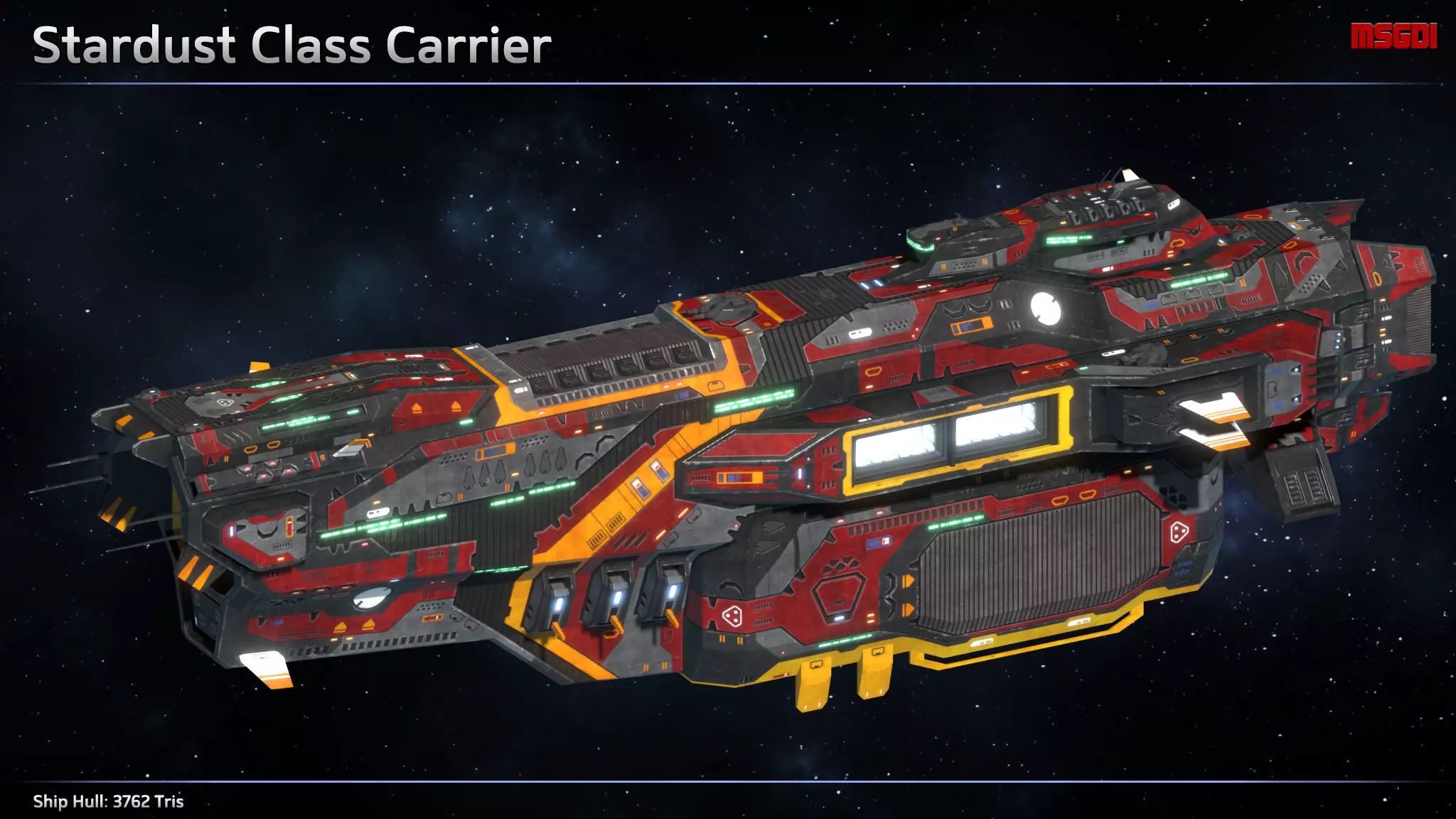 This pack contains a Stardust class carrier with modular weapons. It can be used in a space game.