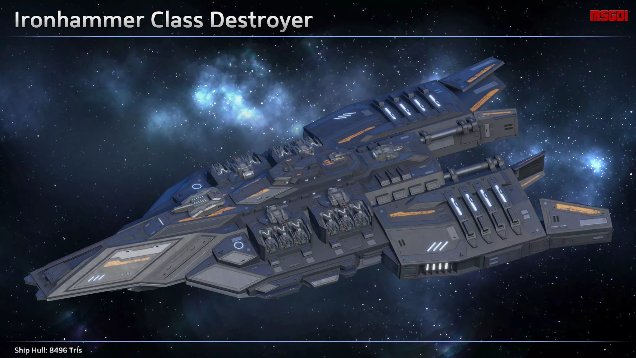 This pack contains an Ironhammer class destroyer with modular weapons. It can be used in space games.