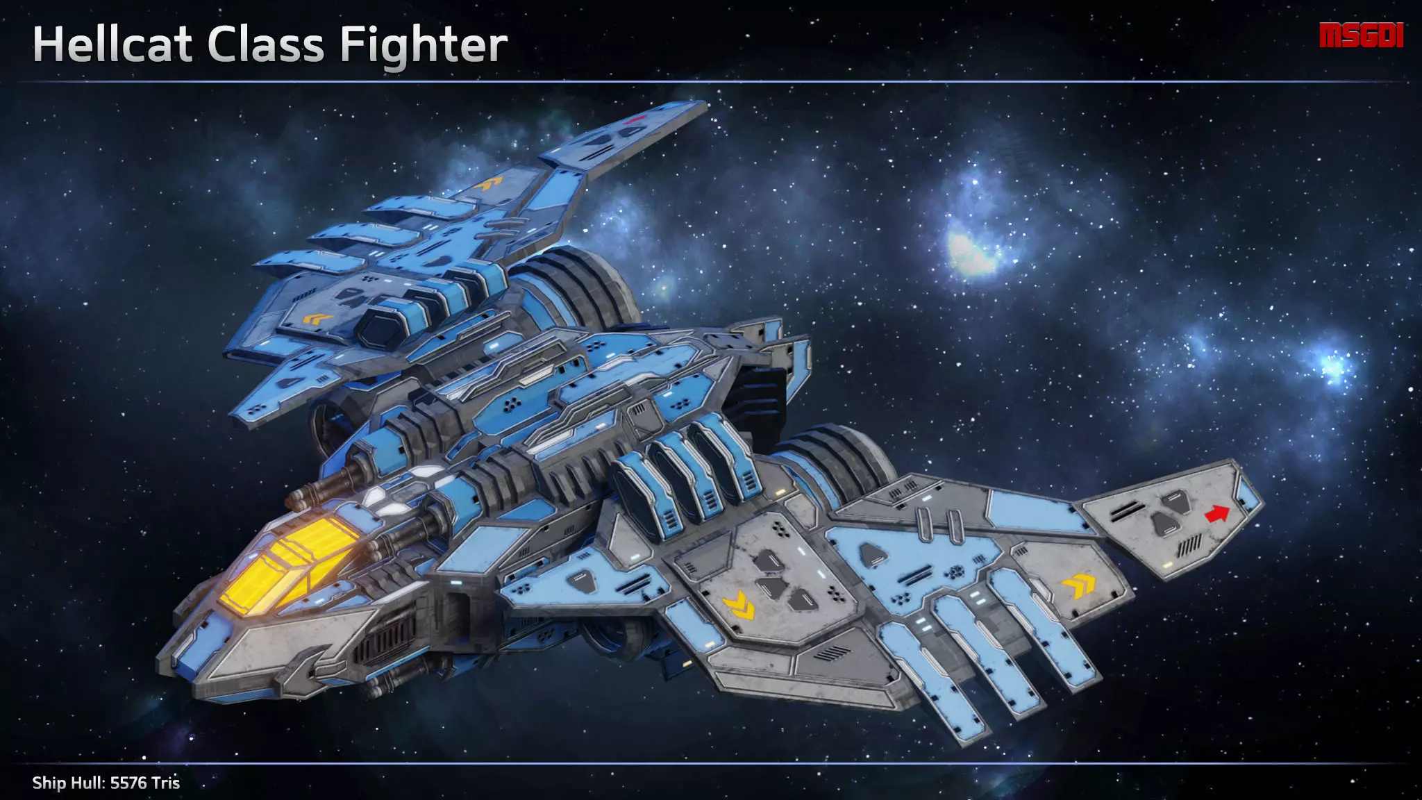 This pack contains a Hellcat scifi fighter with weapons. It can be used in space games.