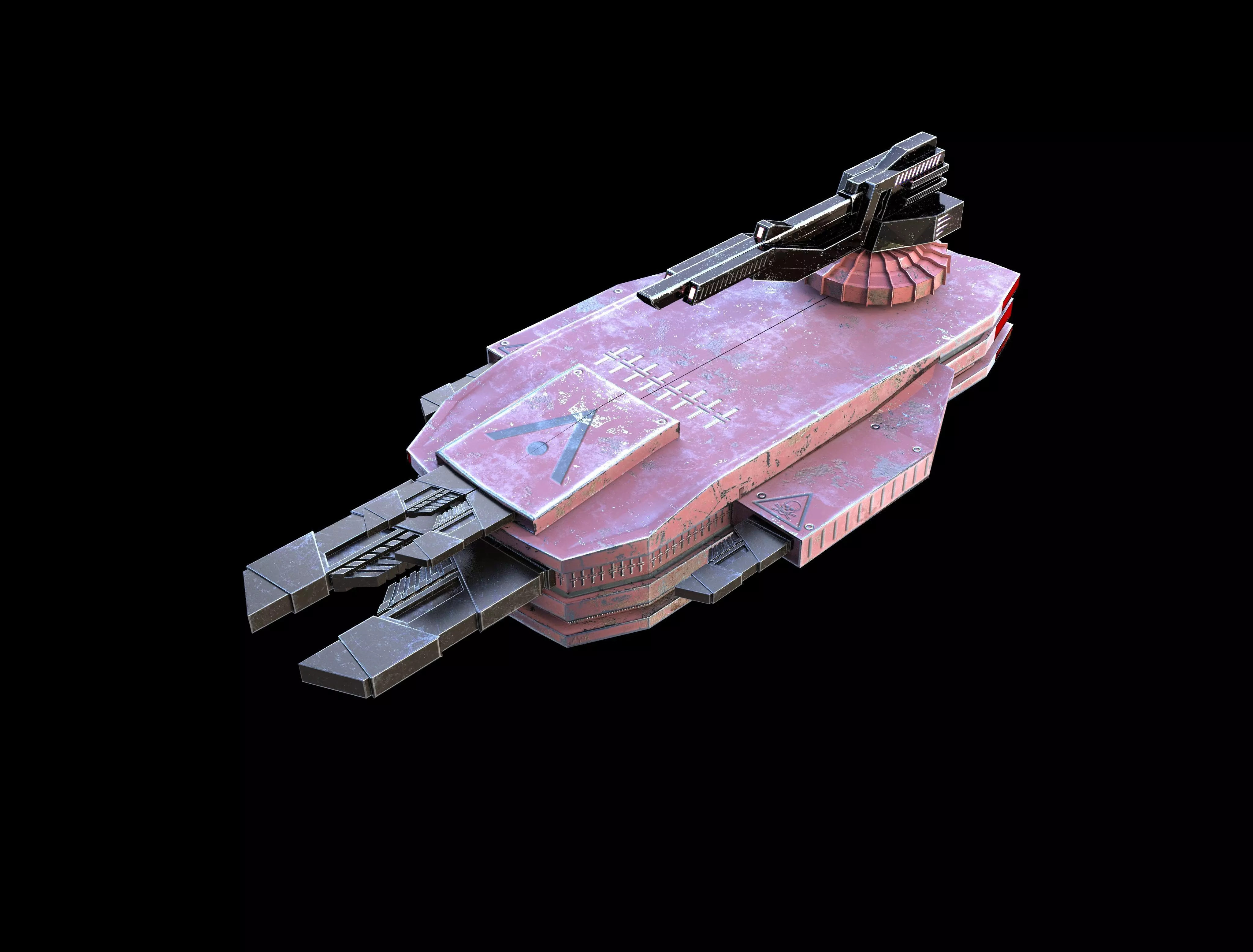 ..................This model is modeled with low polygon for science fiction game developers.................................................................. Pbr technique was used.................................................................. ..................................There is texture for unity and unreal in the files.................................................................................. This model is designed from 4 different models.....................................................................................You can use it in different ways if you want. ................................................You can contact me when you have different color request, I can prepare and send to you for free. .............The coatings are of 2048 * 2048 quality. I can send you higher quality if you want............................you can activate and turn on the suction and emissive channel at any time.............................................you can pull the front and side guns into the body at any time.......................................................................substance painter working files are attached................................................