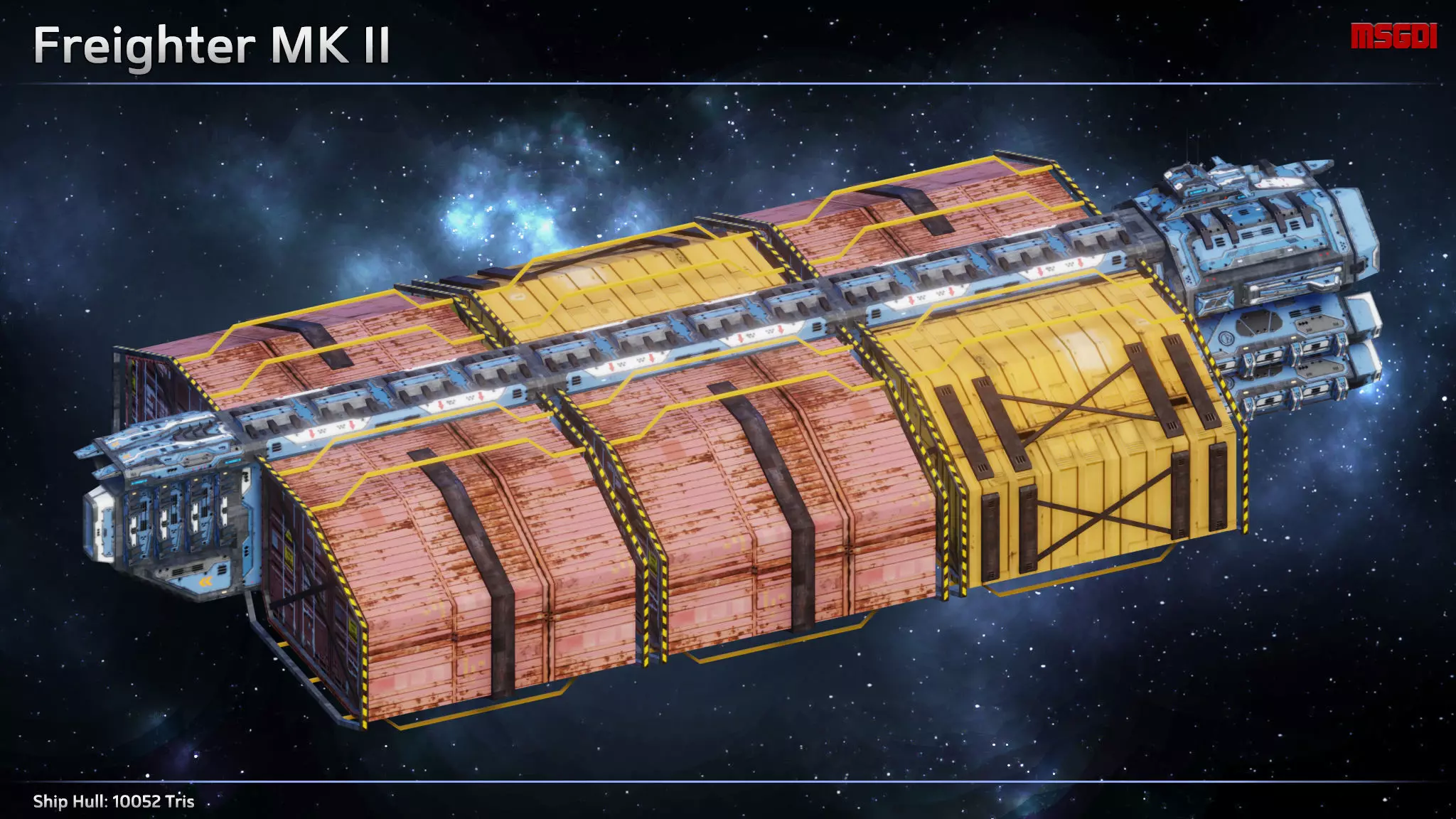This pack contains a scifi freighter MKII. It can be used in space games.