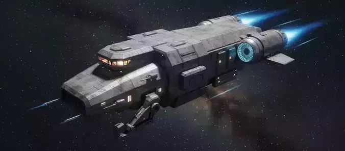 SCIFI Starship 004 Game-Ready and 3D Print Solid Mesh Low-poly 3D model